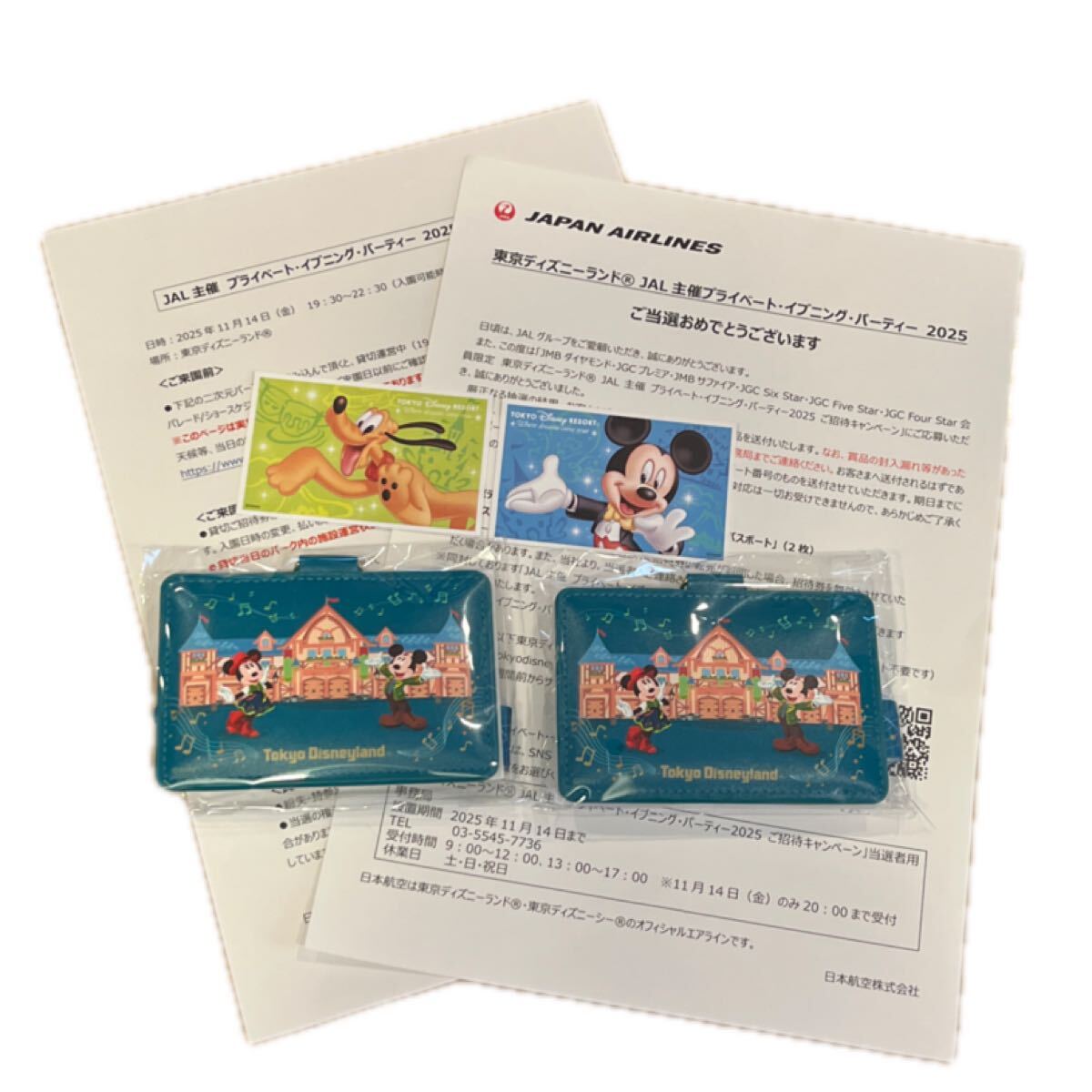 JAL 東京ディズニーランド プライベート・イブニング・パーティー 貸切チケット×2枚+JALネックストラップ付きパスケース(2つ)セット