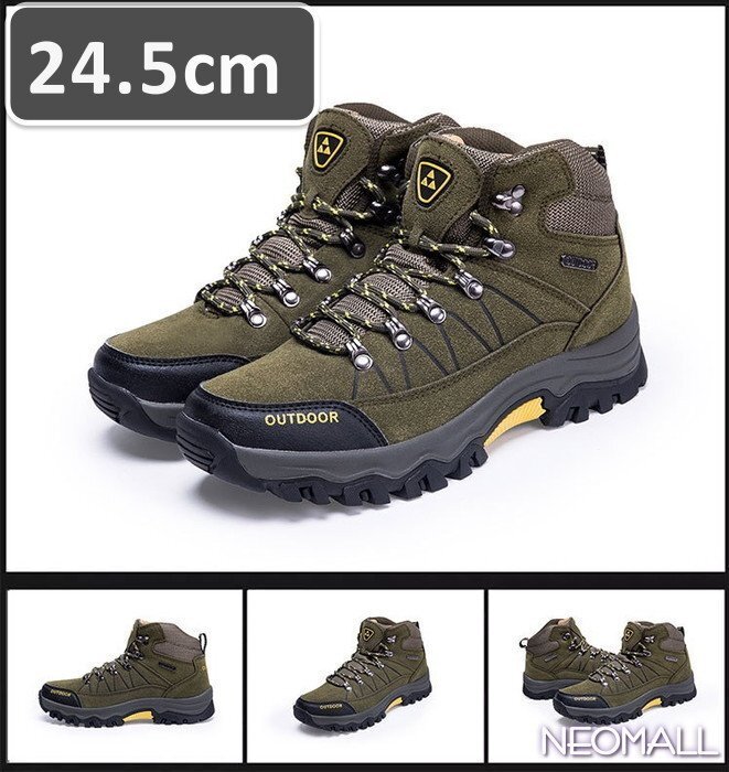 メンズ トレッキングシューズ グリーン 24.5cm【858】ハイカット ハイキングシューズ 防滑 耐磨耗 衝撃吸収 レディース 男女兼用