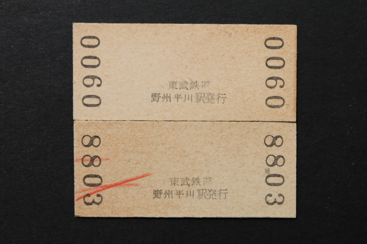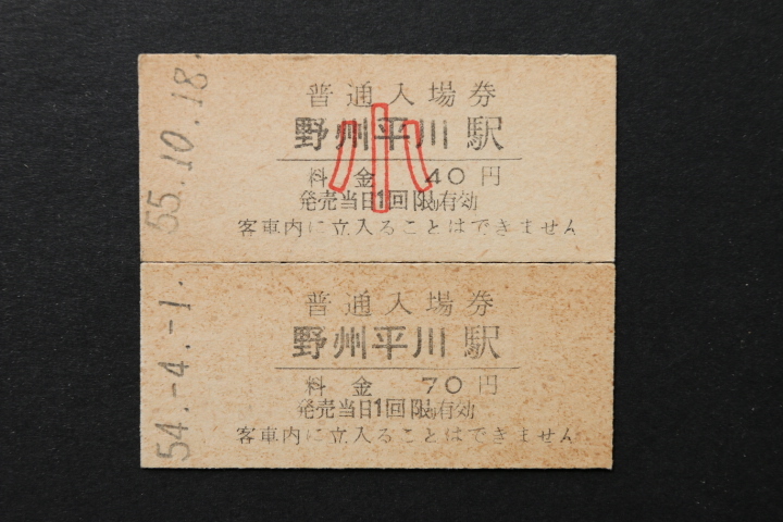 東武鉄道入場券 野州平川駅 大人券小児券2枚セット 70