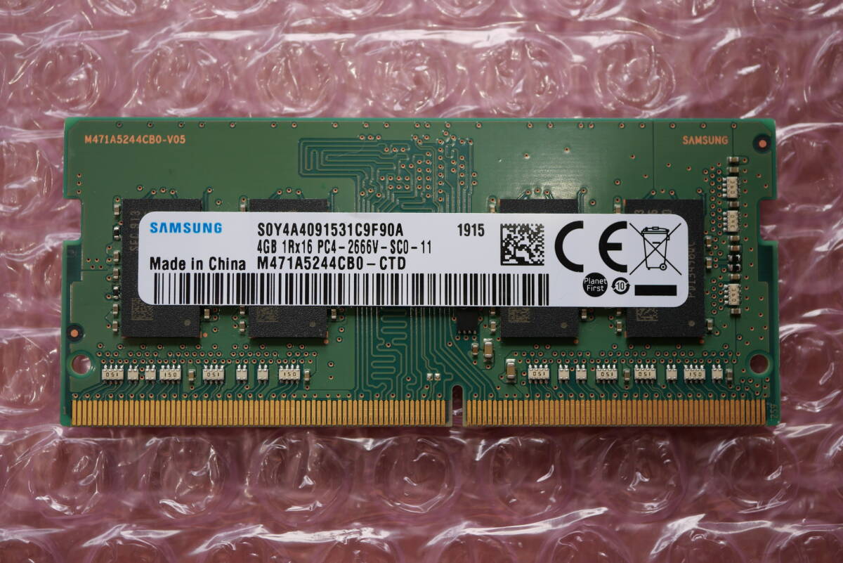 【中古品】SAMSUNG ノート用4GBメモリー 1Rx16 PC4-2666V-SC0-11 M471A5244CB0-CTD 1915-07