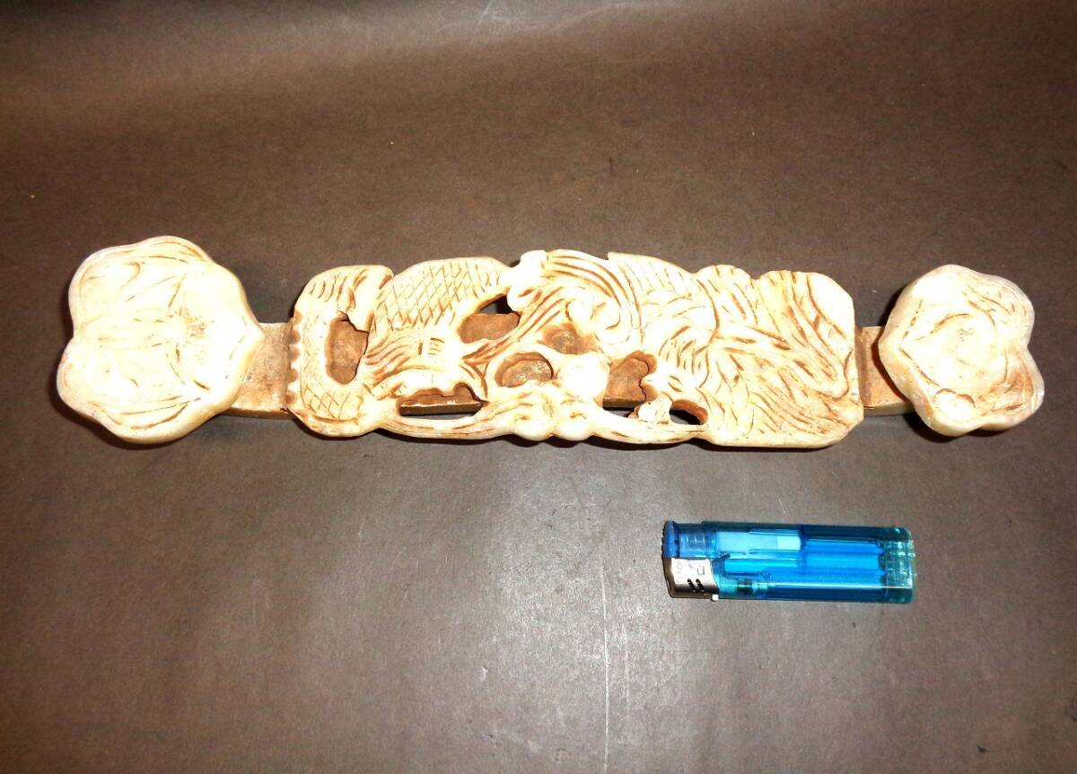 桃や蝙蝠など、中国で縁起の良い物とされる物が彫刻されています。