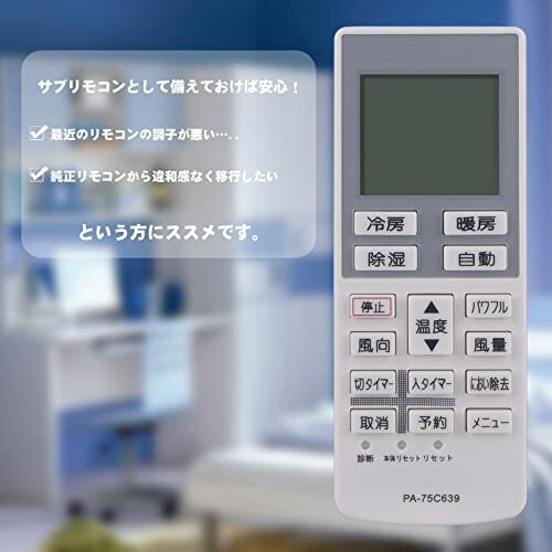 | 商品名 | AULCMEET エアコン用リモコン fit for Panasonic パナソニック A75C3639(代替品) CWA75C3640X CS-F280C CS-F560C2Z CS-25BBF CS-22LFE7 |