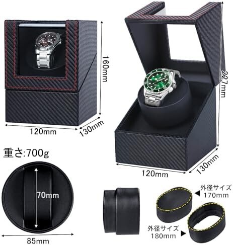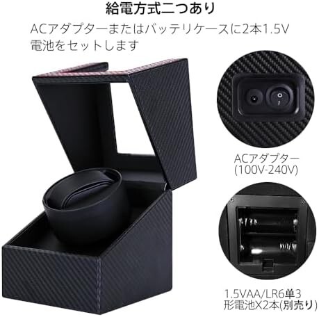 ワインディングマシーン(1本巻き) ウォッチワインダー 自動巻き時計ワインディングマシーン 自動巻き上げ機 男女の腕時計は全部使えます (01:ブラック1+0T)
