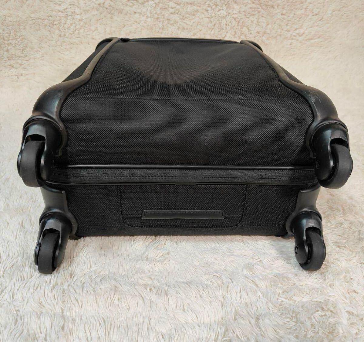 一度使えば付いてしまいそうなタイヤ周りに多少キズ、細かな擦れはありますが、使用感としては全体的に少ない綺麗なキャリーバッグです