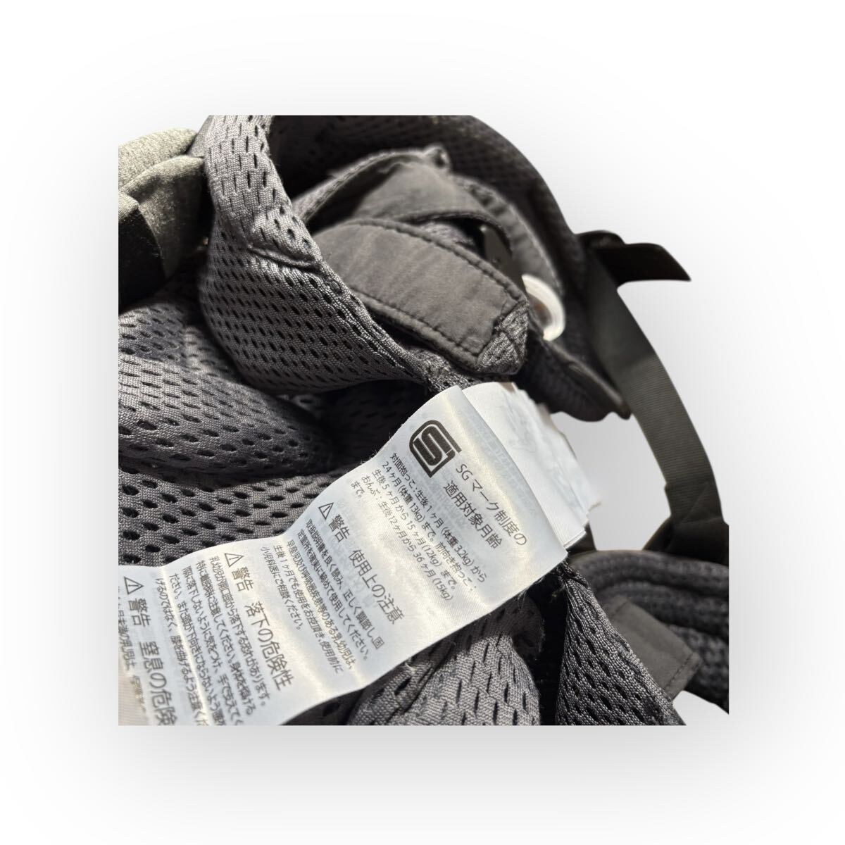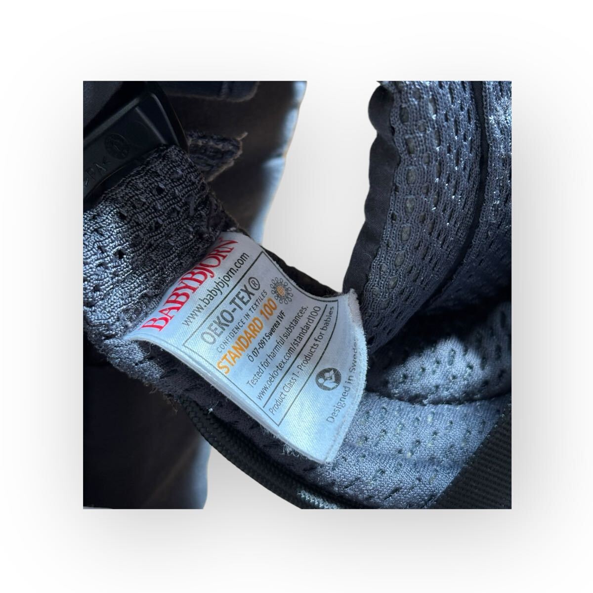 通気性に優れたメッシュ素材のブラック抱っこ紐、調整可能なストラップと安全バックル付き。