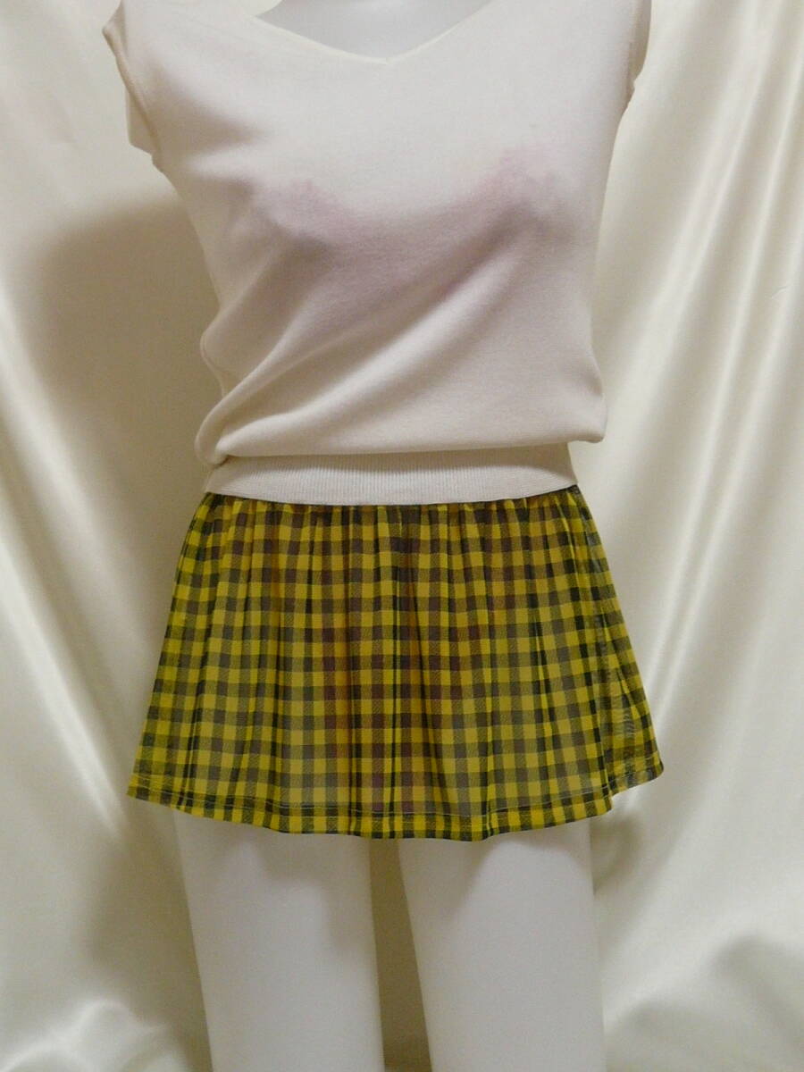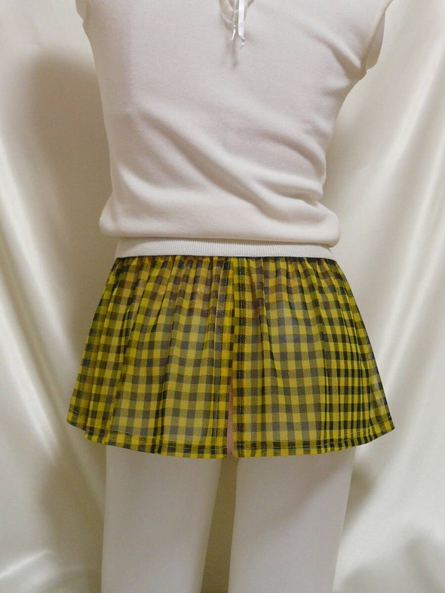 ♪♪黄色と黒の格子柄の超マイクロミニ☆ストレッチメッシュ☆おしりぱっくり^^♪♪