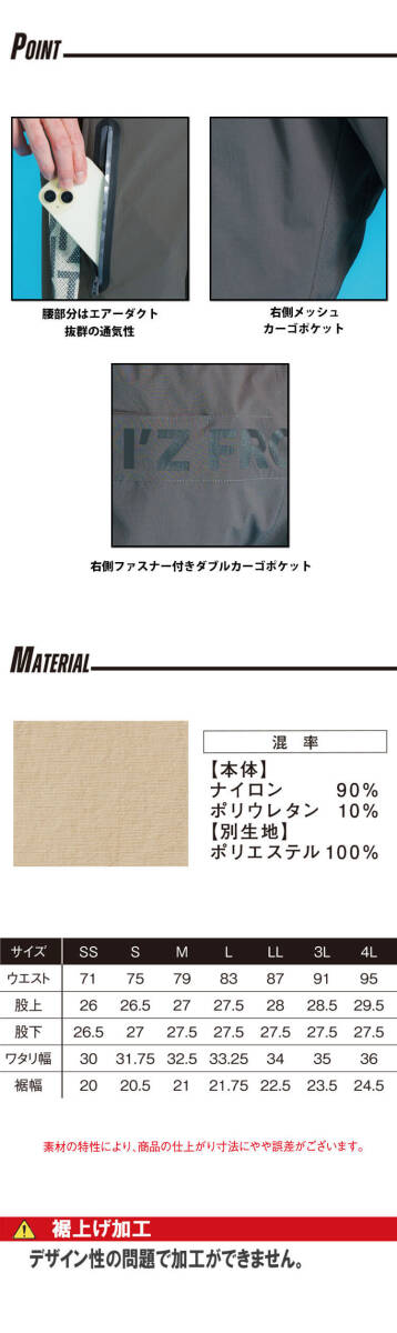 作業服 春夏 アイズフロンティア 接触冷感 A.D.ストレッチエアーダクトハーフパンツ 4904 Mサイズ 55プラムベージュ
