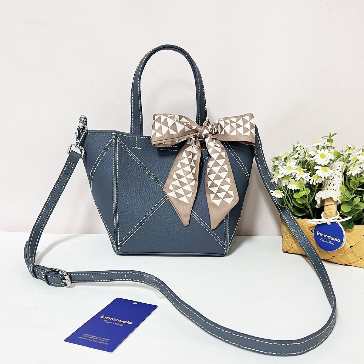 上品・ハンドバッグ 定価12万◆Emmauela・イタリア・ミラノ発◆高級牛革 大容量 2WAY ポーチ付き バケツバッグ デイリー 通勤 レディース
