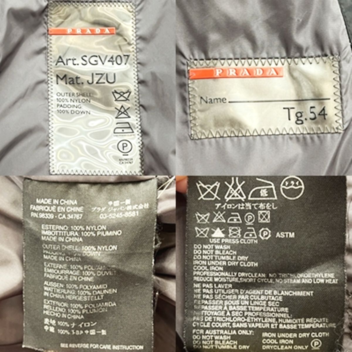 ■Name:Prada Sport Down Jacket Stand Collar No Hood Black Size 54 XL Approx. Winter Men's