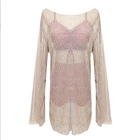 ・ラメ入りのシアー長袖トップスは日焼け対策や体系カバーができて大活躍。