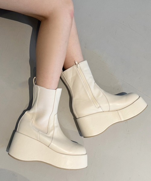 参考商品名:【マイナス3キロ見え】サイドゴアボリュームソールショートブーツ