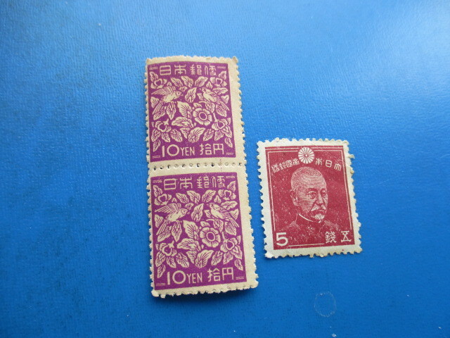らでん模様2枚と東郷元帥5銭 未使用です。裏糊あります。わずかなシミがあります。