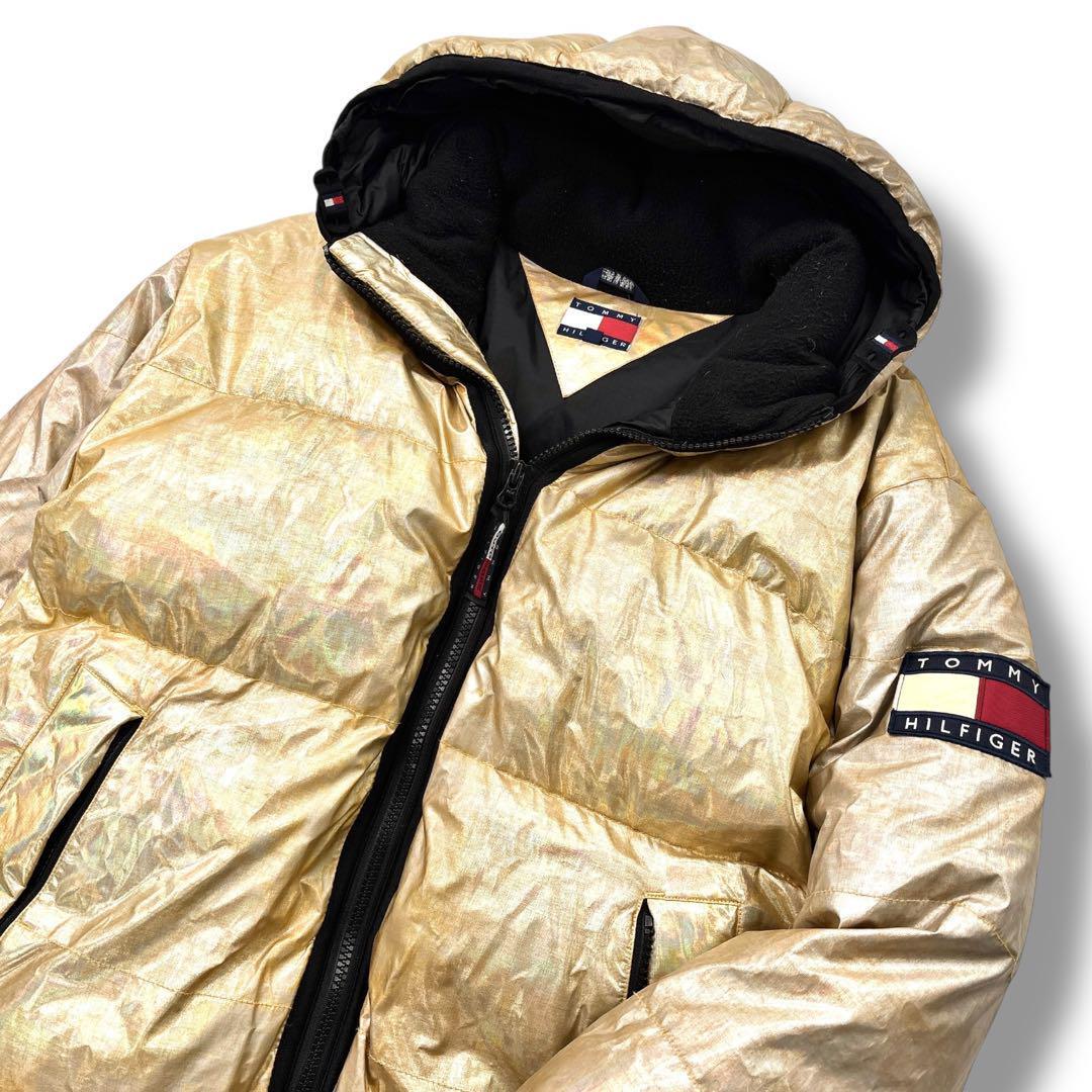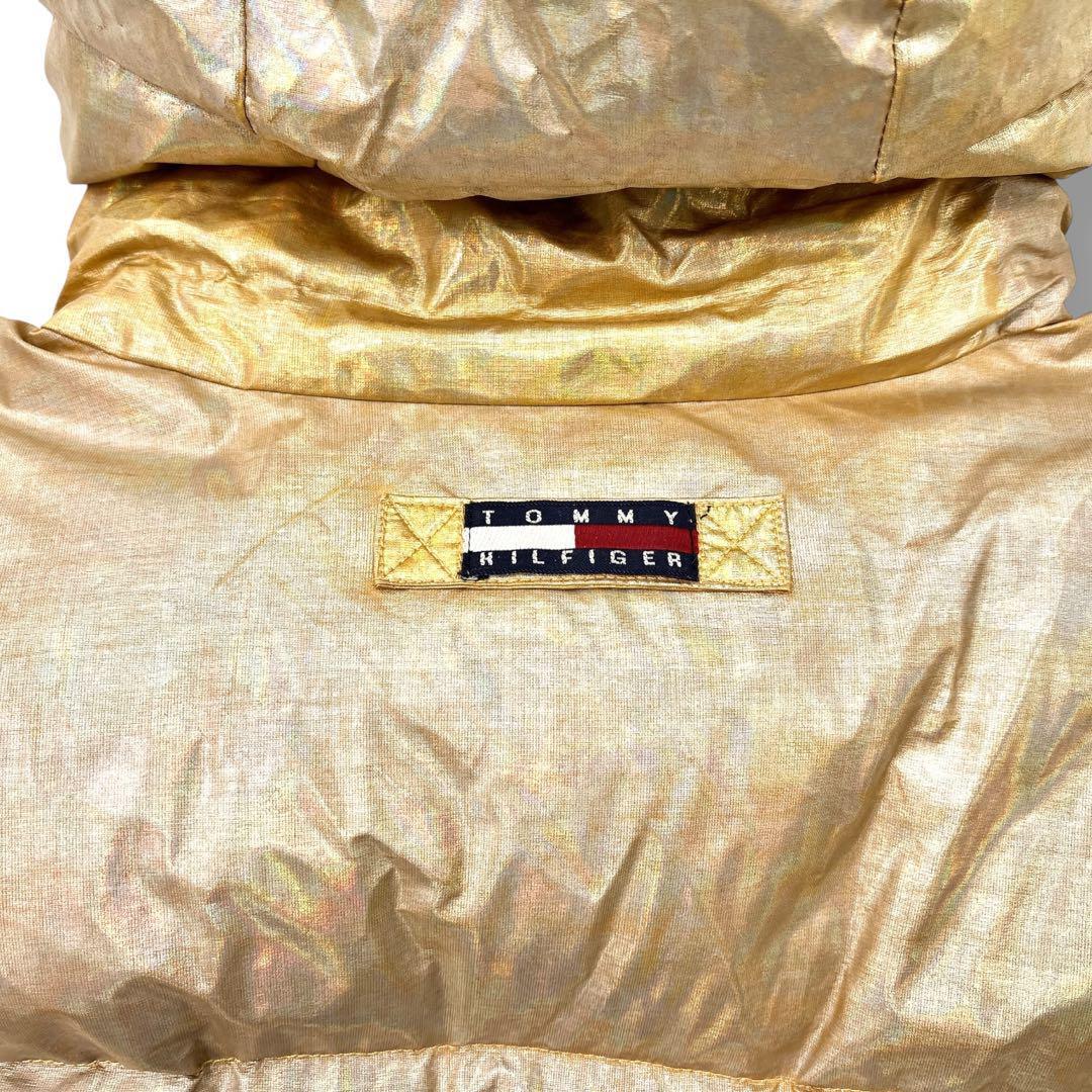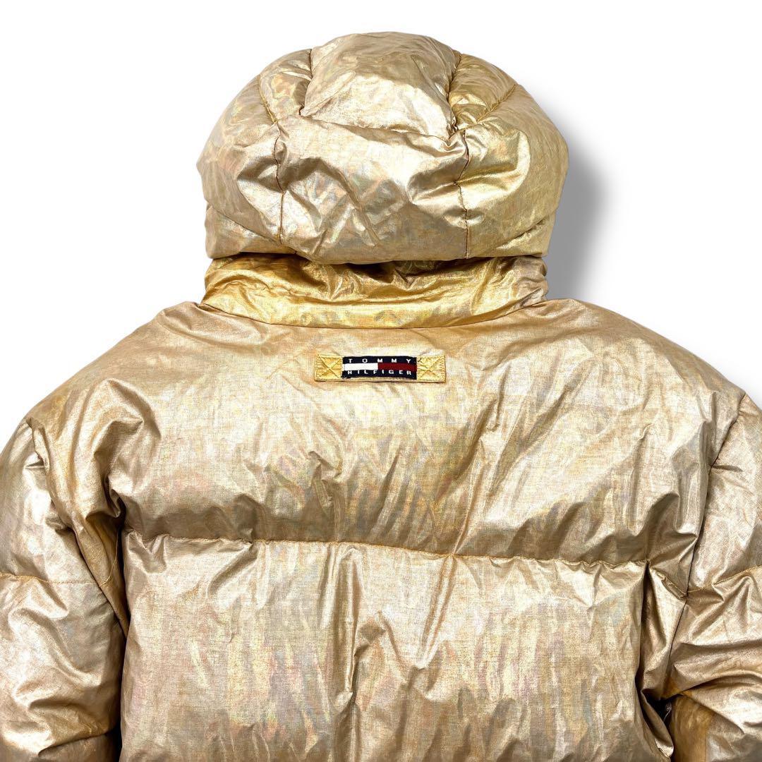 【希少】TOMMY HILFIGER トミーヒルフィガー ダウンジャケット コート 金色 ゴールド ロゴワッペン アパレル L