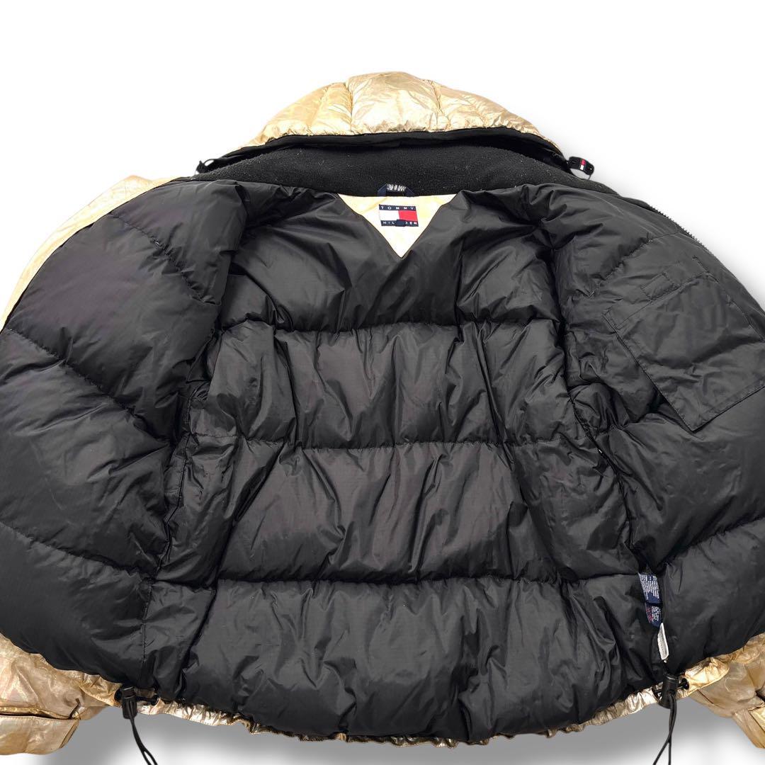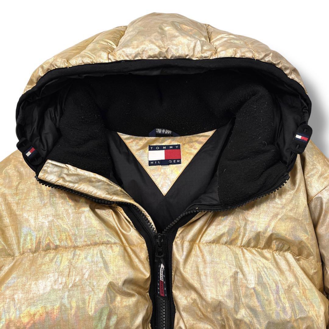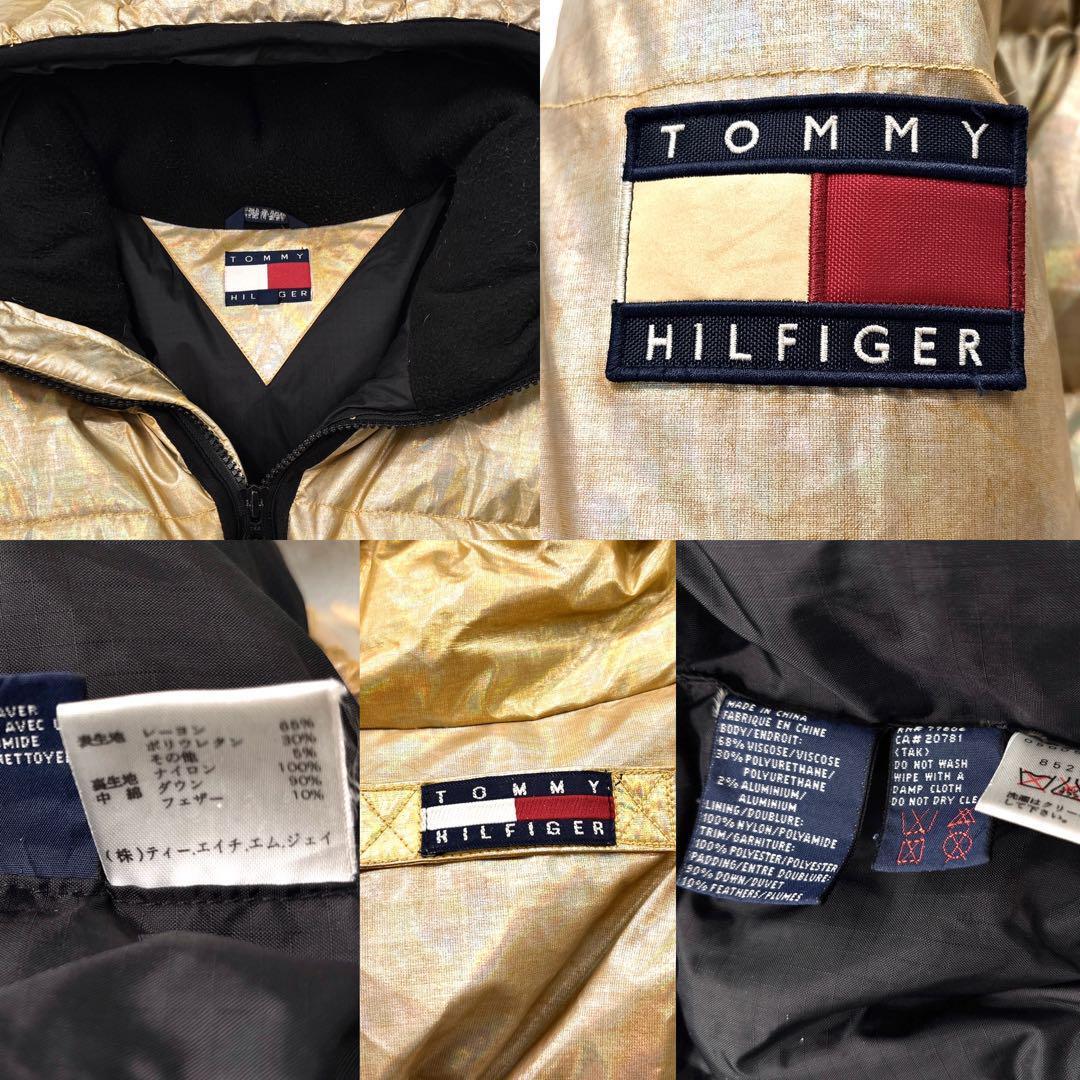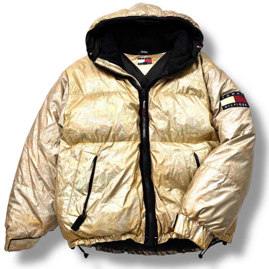 【希少】TOMMY HILFIGER トミーヒルフィガー ダウンジャケット コート 金色 ゴールド ロゴワッペン アパレル L