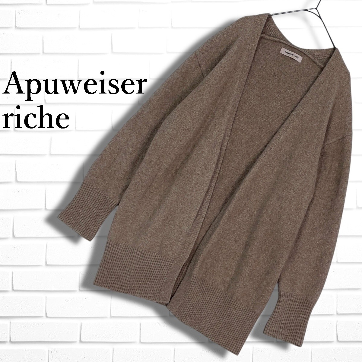 ◆美品◆ Apuweiser-riche アプワイザーリッシェ フォックス ウール ブレンド ニット ゆったり♪ 羽織り ロング カーディガン ベージュ系 レディース 2 ◆送料無料◆ 0465J◇