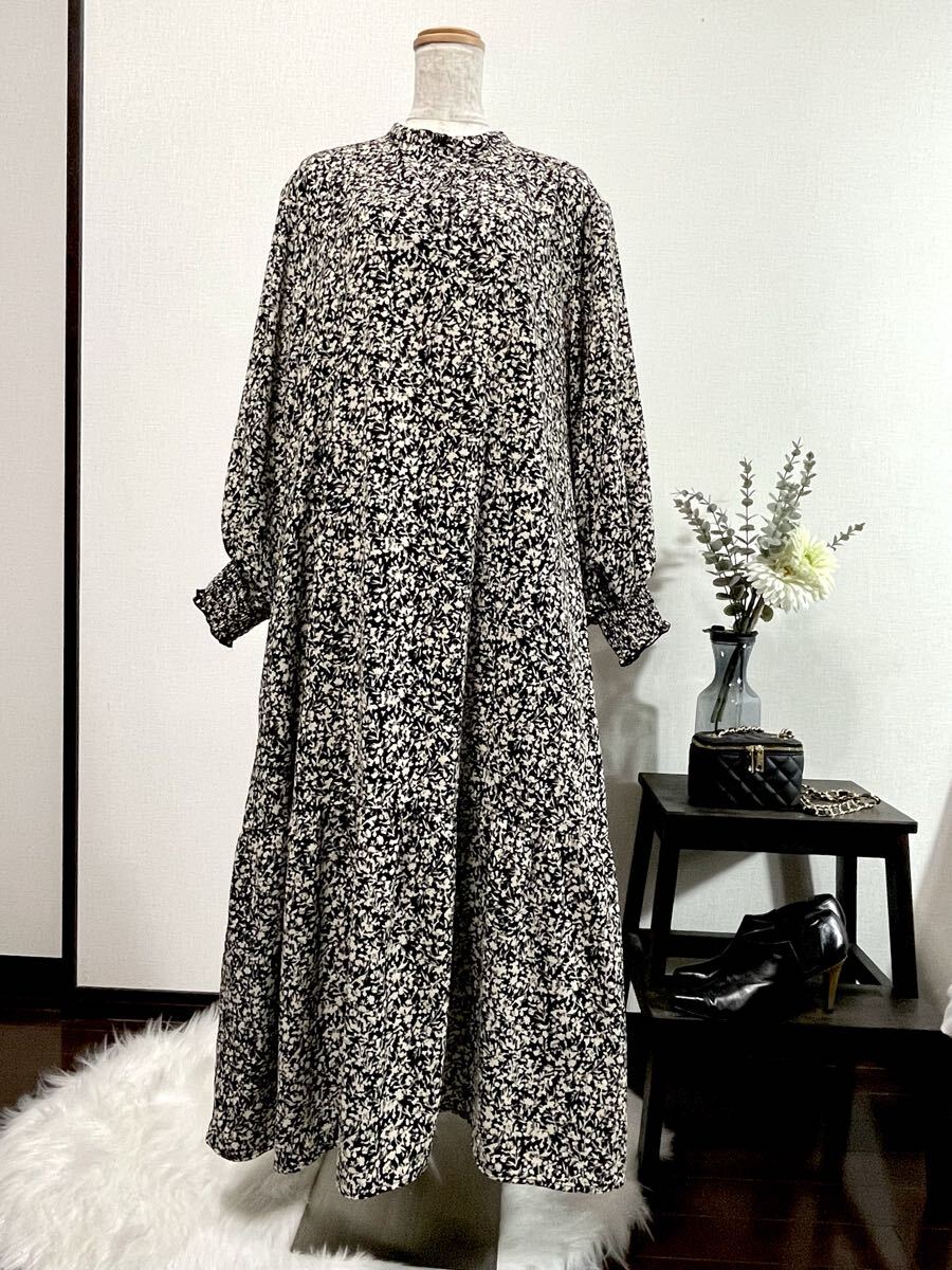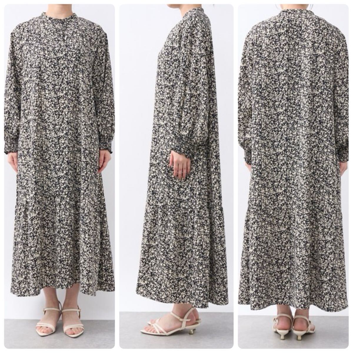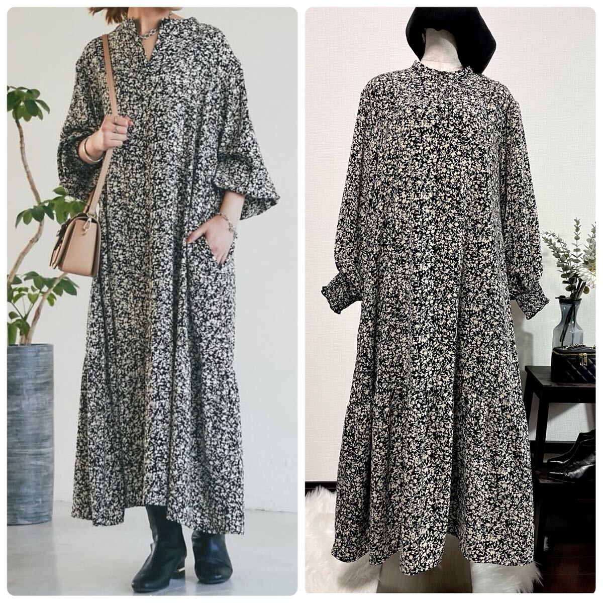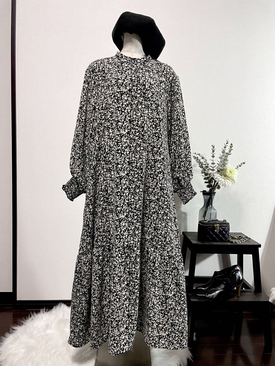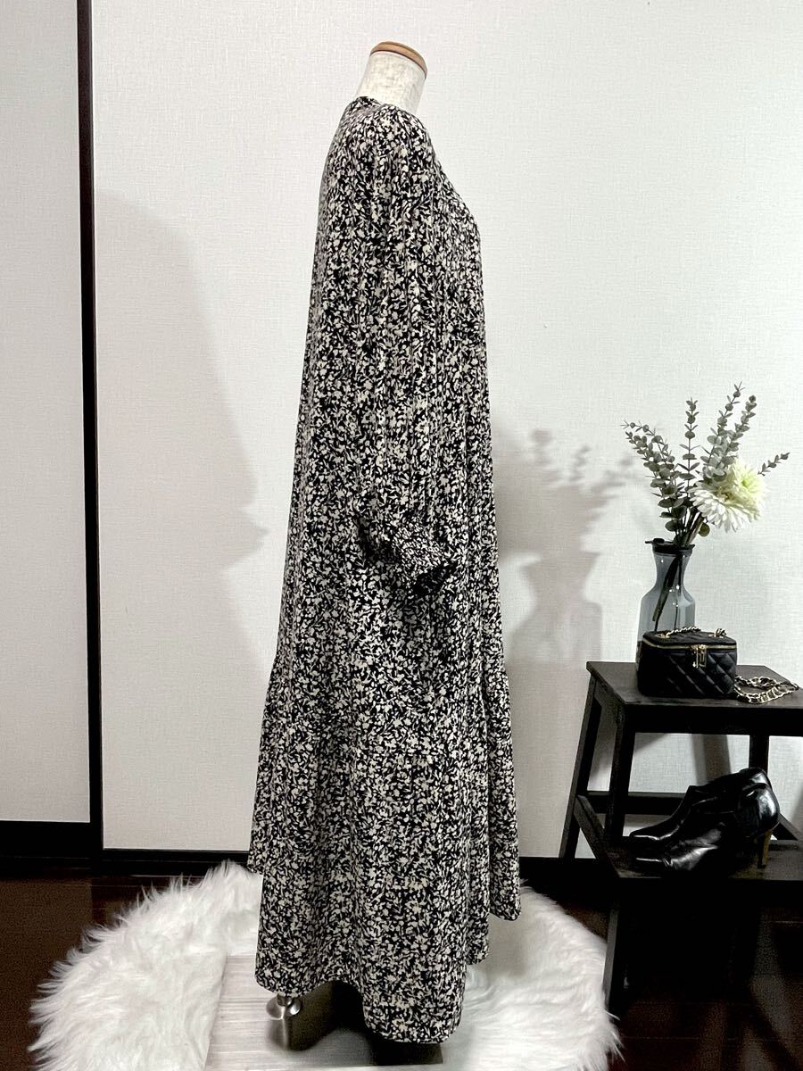 ローズバッド ジョーゼット花柄カフタンワンピース 袖口フリル