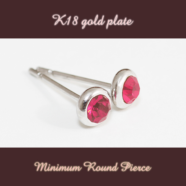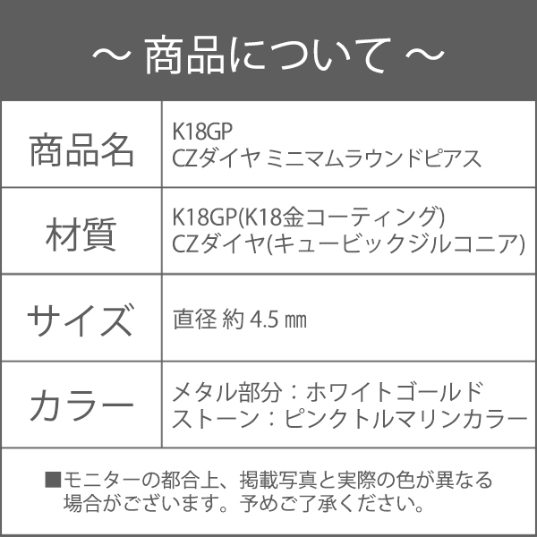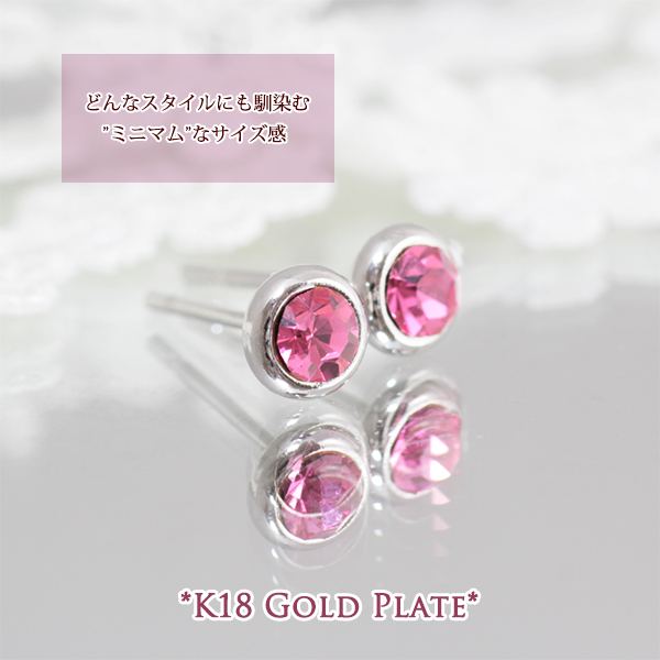 ピアス レディース ピンクトルマリン シンプル 小ぶり 小さめ 18金 18kコーティング シルバー K18GP /【ピンクトルマリンカラー】 CZダイヤ