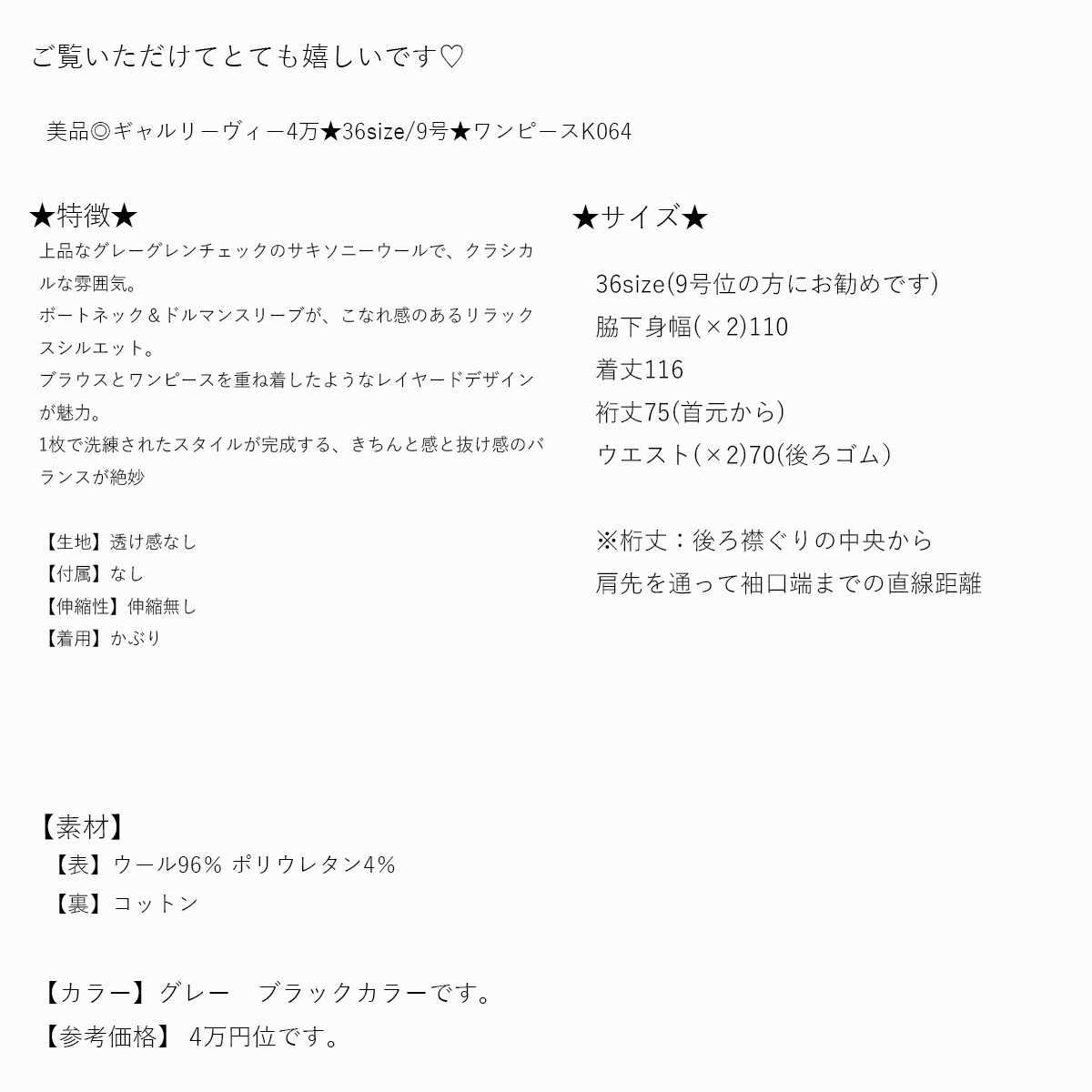 美品◎素敵482★ギャルリーヴィー4万★36size/9号★ワンピースK064