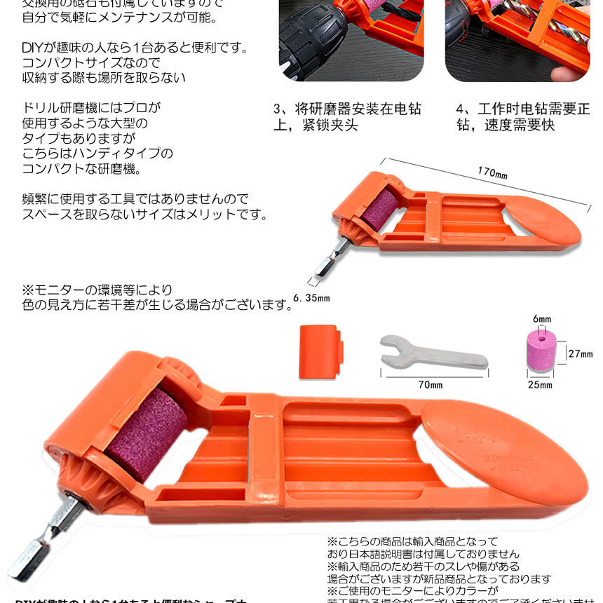 | 送料無料!!! 送料及び下記のご案内をご確認の上、ご入札お願い致します。 離島地域を除く九州、四国、本州まで送料無料。 ※北海道は+1000円、離島地域及び沖縄県は+3000円にて承ります。(発送前に加算) ※画像内にカラー及びサイズ等の選択が可能と記載がある場合がございますが、 お届けする物はタイトルまたは商品説明文に記載の物です。 ★※注文後のカラー変更や異なるカラー・サイズ指定等は一切承っておりません。 ※★※仕様(ロゴデザイン/ロゴ有無等も含む)は予告なく変更する場合があります。 ※多少の汚れや小傷がある場合がございますがご了承ください。 梱包は簡易包装ですので、箱の角落ち等はご了承願います。 【商品説明】 ※こちらの商品はお得な2セット商品です※ 電動ドリルの刃を研磨する工具 ドリル刃のカッティングエッジと 逃げ面の両方を一度に研磨できる優れものです。 砥石の粒度が細かいので きれいな仕上げが可能。 刃を正確に砥石に当てるため ずれることなく研磨作業することができます。 研磨機には電気が必要ないので屋外でも使える 研磨機は通電の必要がありません。 先端の回転軸をお手持ちの電動ドリルに固定し ドリルを回転させると研磨機の砥石が回転する仕組みです。 ※詳細は画像をご覧ください。 ![]() ![]() ![]() ![]() ![]() ![]() |