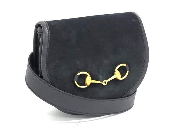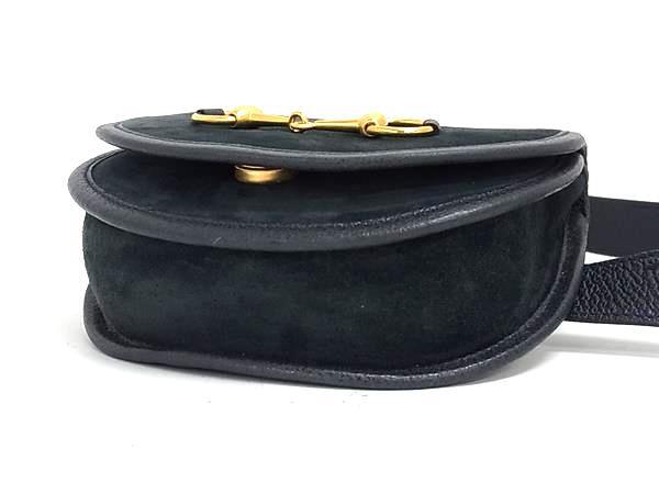 1円 GUCCI グッチ ホースビット スエード×レザー ボディバッグ ウエストポーチ ウエストバッグ メンズ ネイビー系 FR4845