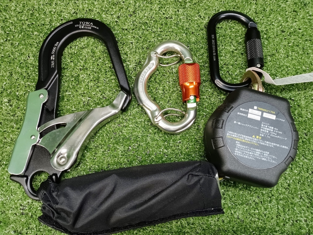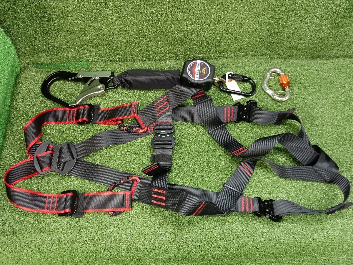 【 ハーネス汚れ 未使用 TOWA 東和 巻取式 リーマックスランヤード + ハーネス 100kg対応 TWRMXLY170A ② 】 | ||