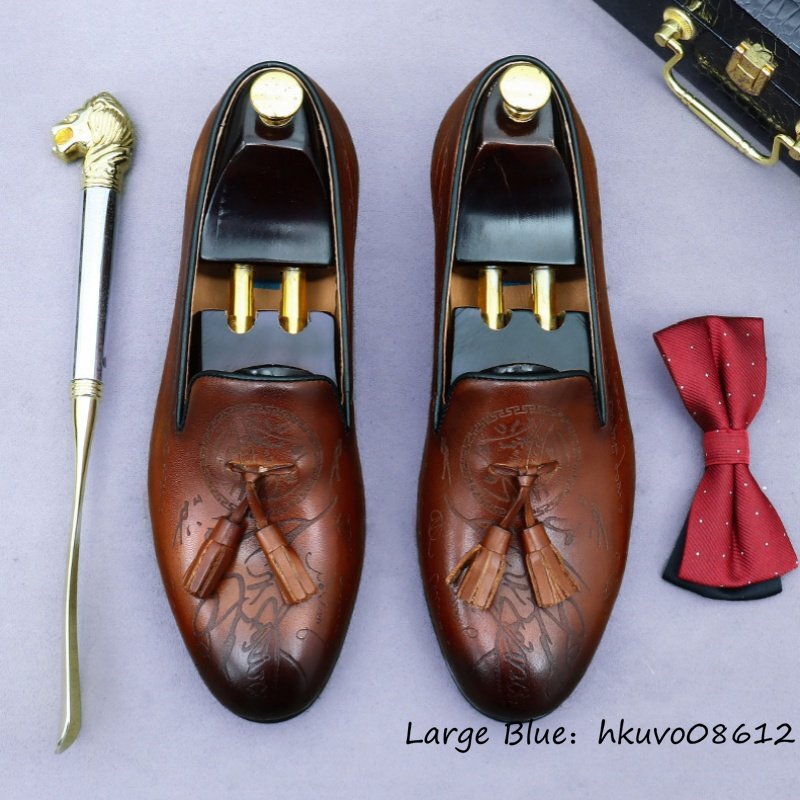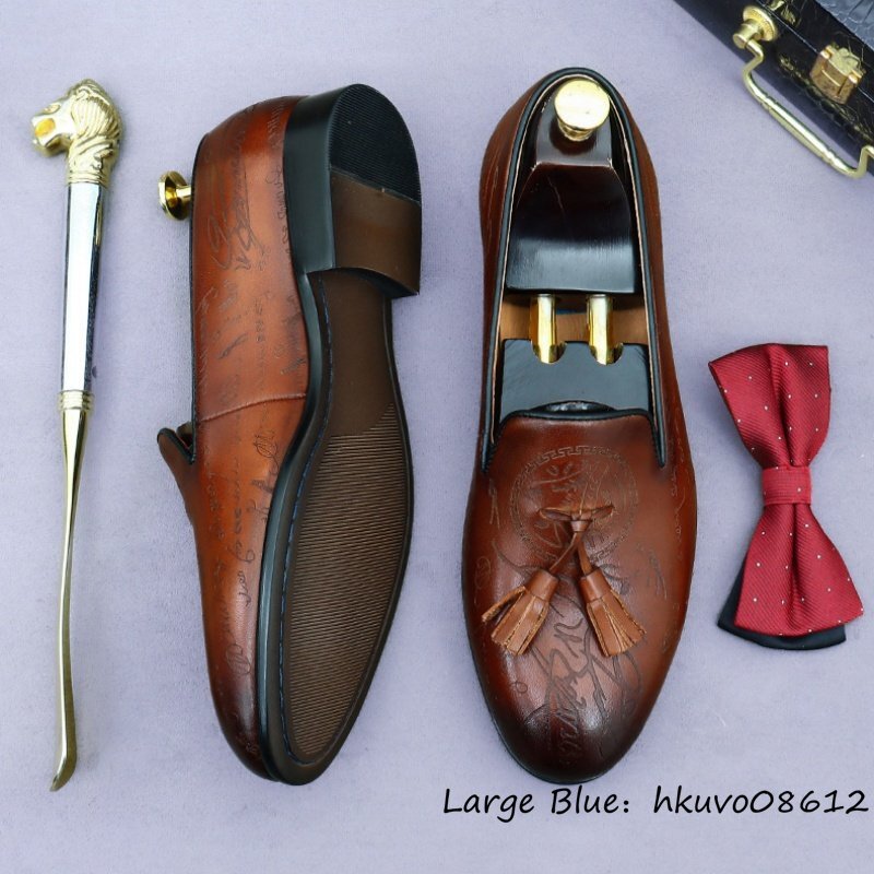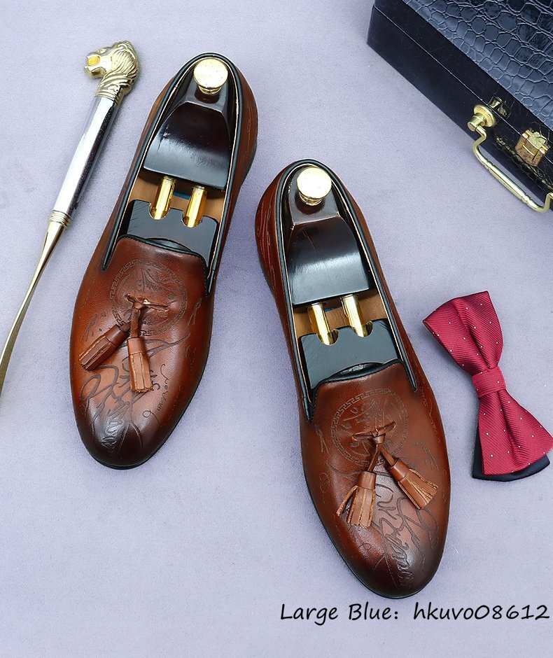 最高級★定価11万超 レザーシューズ 本革 ビジネスシューズ メンズ 職人手作り ローファー スリッポン 紳士靴 牛革 革靴 ブラウン 24.5cm