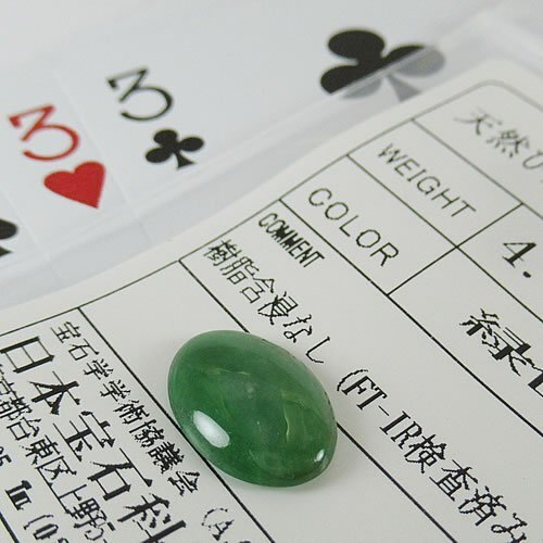 | 品名 /【SJ】新品 ヒスイ(ジェイダイト)4.16ct ジュエリールース 材質 / 天然ヒスイ(ジェイダイト) 縦・横 / (約)14.5mm 10mm 厚さ / (約)3.3mm 総重量 / 4.16ct 日宝協ソーティング付き 【SJ】/ 新品製品 品番 / ACD574 参考小売価格 / 308,000円 |