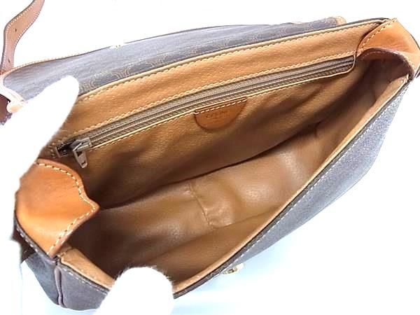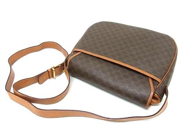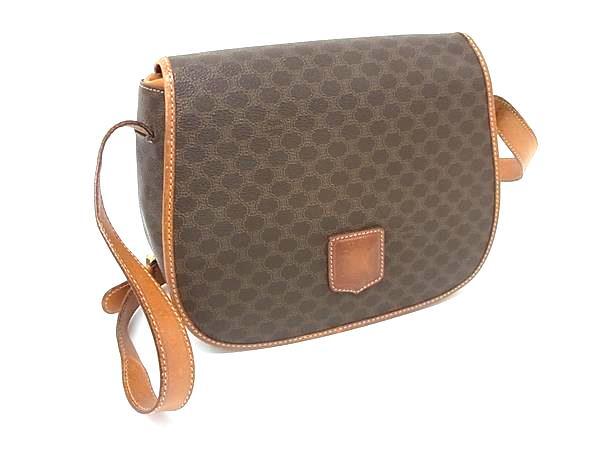 1円 ■美品■ CELINE セリーヌ マカダム柄 PVC×レザー ショルダーバッグ 斜め掛け メンズ レディース ブラウン系 FR4862