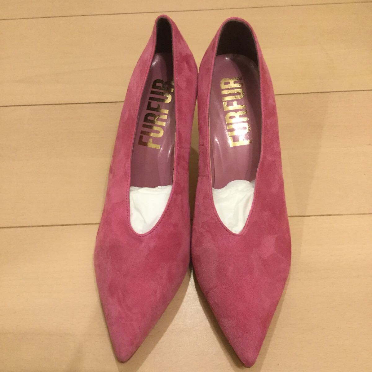 FUR FUR ファーファーハイヒールパンプスピンク スエード