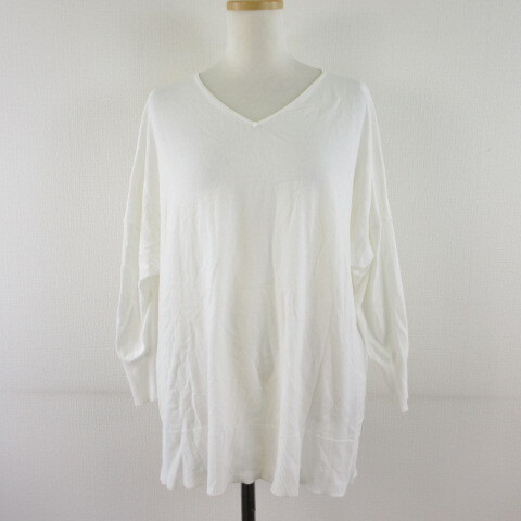 ナチュラルビューティーベーシック NATURAL BEAUTY BASIC ニット セーター 長袖 Vネック 白 M *T473 レディース