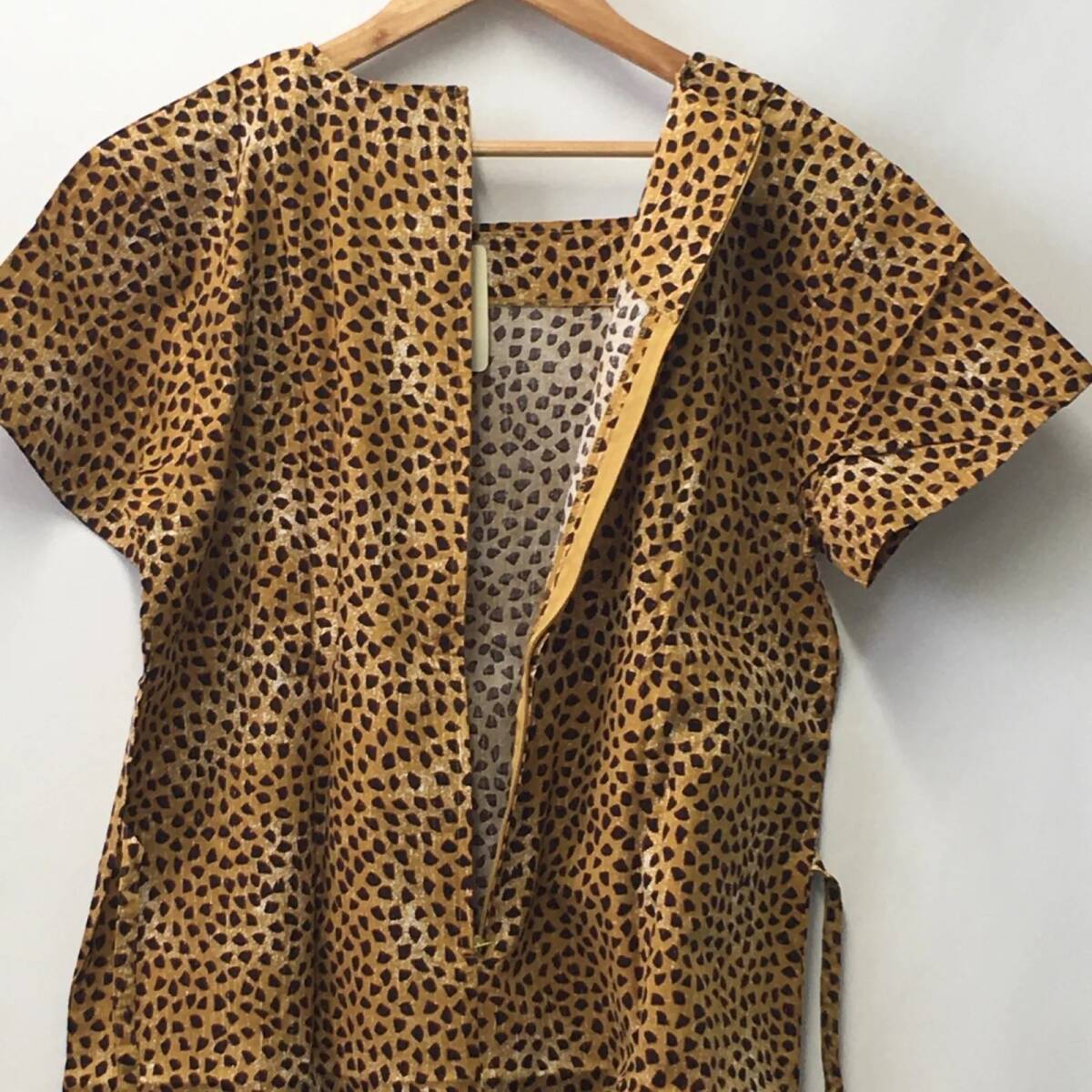 【未使用】LaPENSSE ラパンセ ロング 半袖ワンピース ブラウン アニマル柄 サイズL(B,86~94)