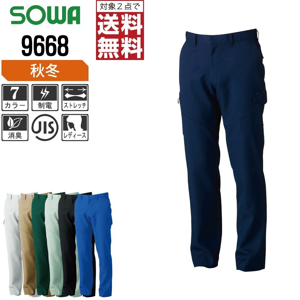 SOWA 秋冬 制電 ストレッチ レディース カーゴパンツ 9668 色:モスグリーン サイズ:GL ★ 対象2点 送料無料 ★