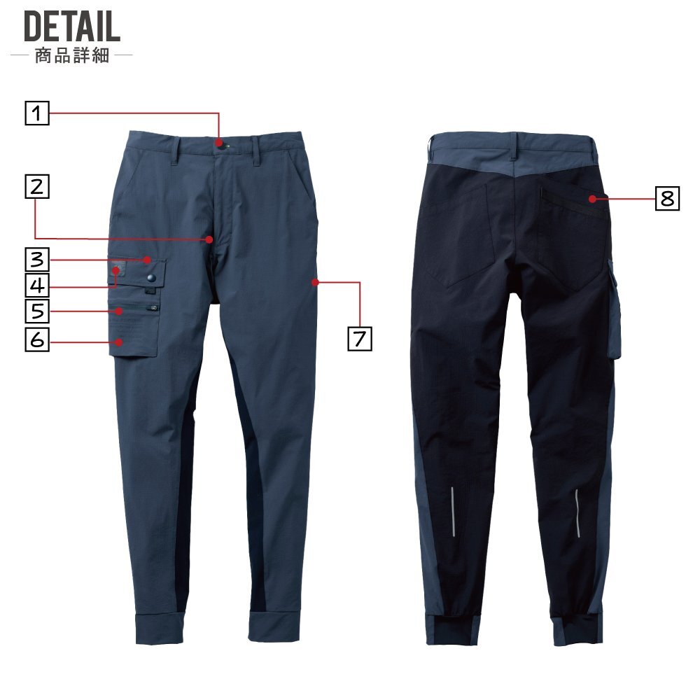 仕様:ストレッチ 吸汗速乾 サイドペン差し 野帳が入る大容量ポケット 消臭 冷感 反射プリント