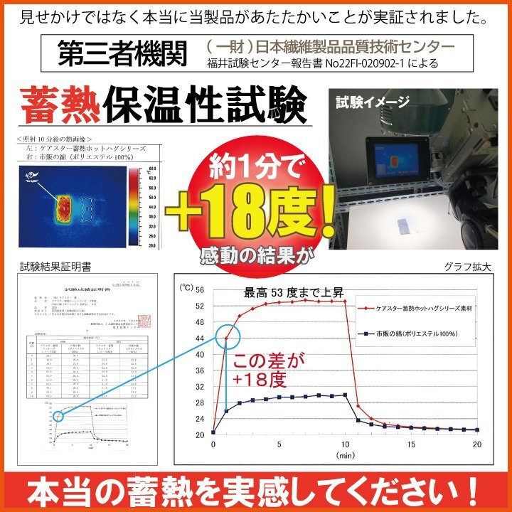 ※この商品は特殊な「熱収集蓄熱素材」を」利用したもので、体温を利用した自然な暖かさを得られる商品です。電源を利用したもののように直接的に熱を発生させるものでは有りません。そのため暖かさの感じ方はお使いになる人によってそれぞれ異なります。予めご理解のうえお買い求めください。