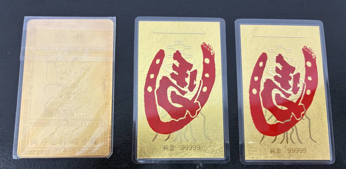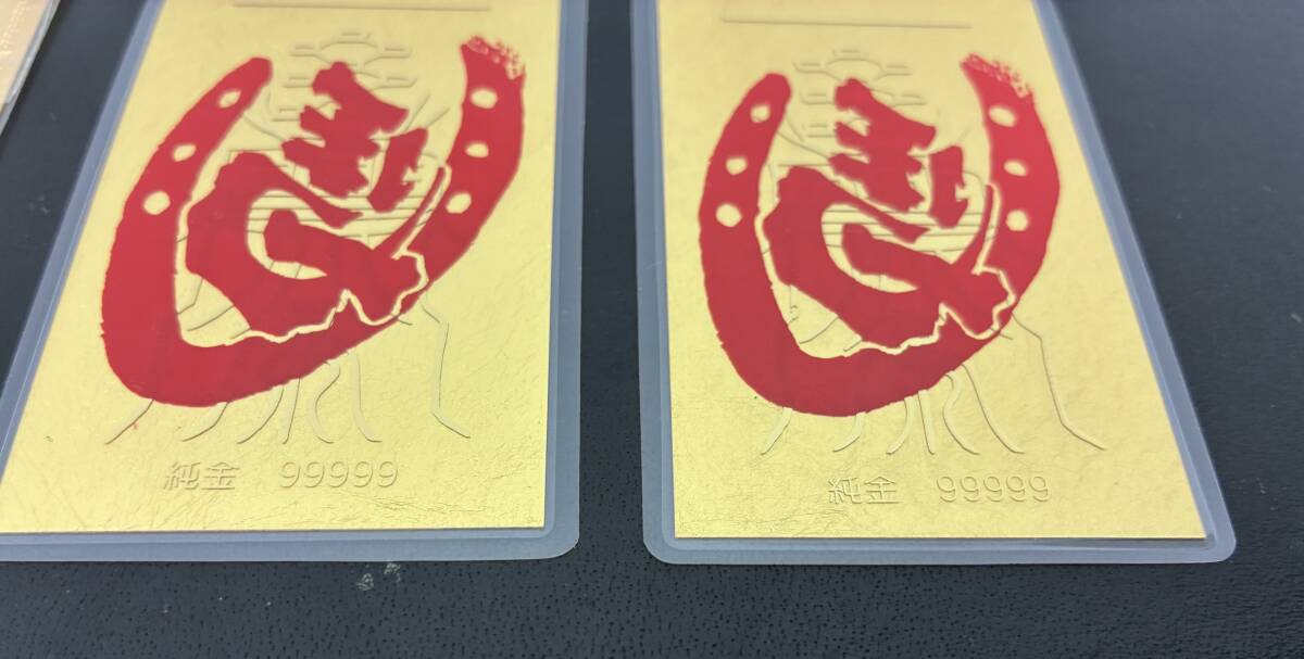 純金カード 純金99999 馬 干支 ラミネート 24K 総重量:2.5g×2 & 金運祝福カード 3枚セット ◆売上No.8865 8866