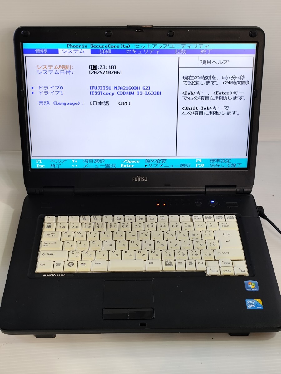 y1206 FUJITSU LIFEBOOK FMV-A8290 FMVNA1CG Core 2 Duo P8700 4GB HDD 160GB ジャンク