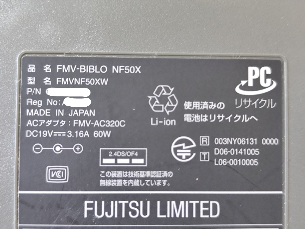 y1199 FUJITSU FMV-BIBLO NF50X FMVNF50XW Celeron M 520 1GB ストレージ無 ジャンク