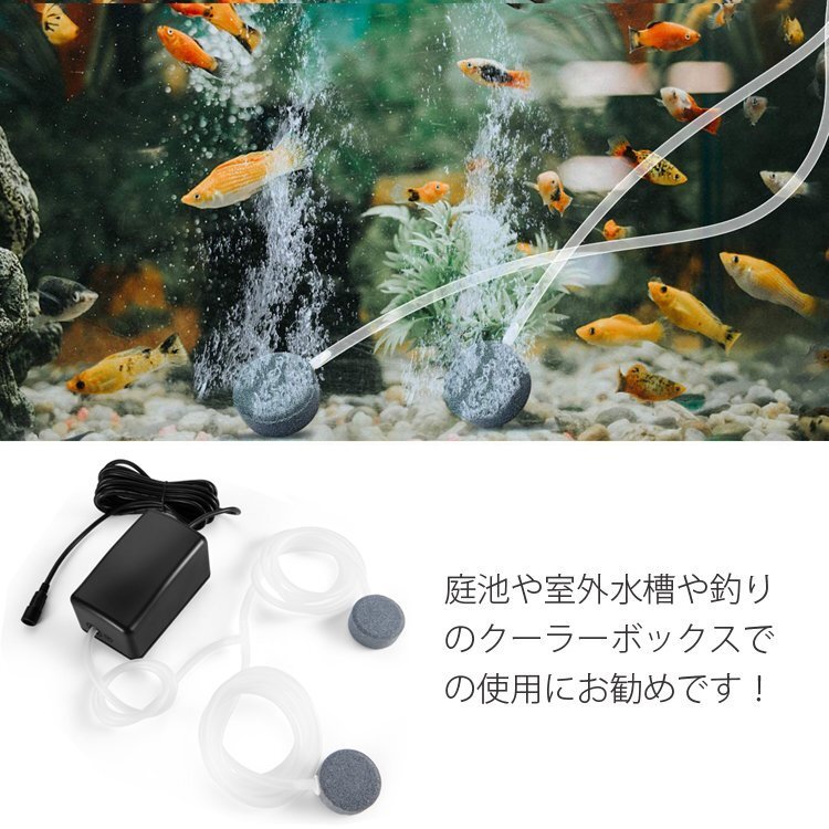 ソーラー給電のため電源不要。各種水槽への酸素供給のほか、釣った魚を活かして運搬する際にも役立ちます。