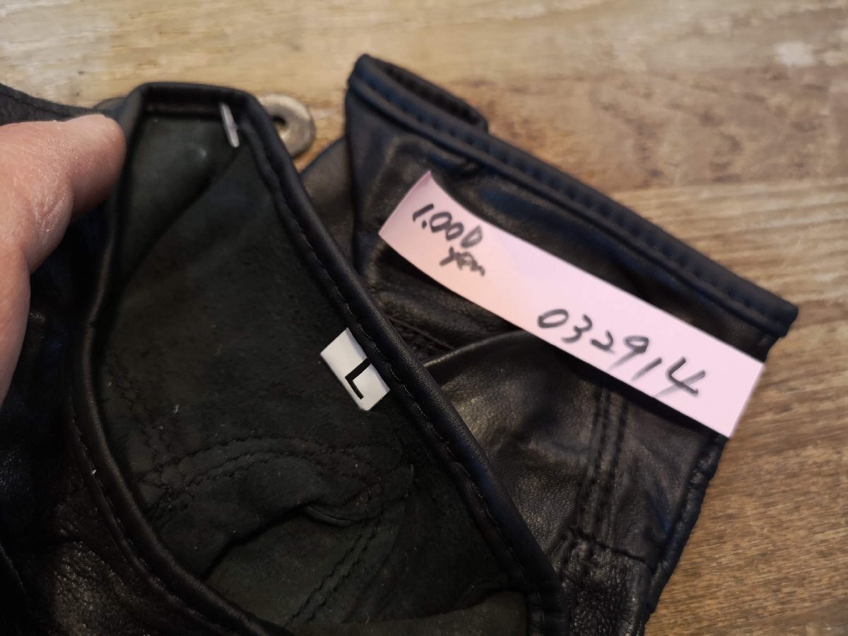 おそらくピッグレザーのフィンガーレスグローブ。 Lサイズ表記で平置き幅11センチ、長さ15センチ程度の標準的男性サイズです。写真の1.2枚目は流用です。 クロネコネコポス便200円にて元払いいたします、落札価格にプラスでお願いいたします。