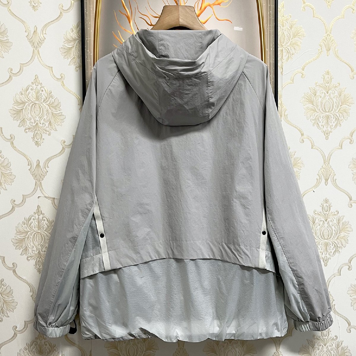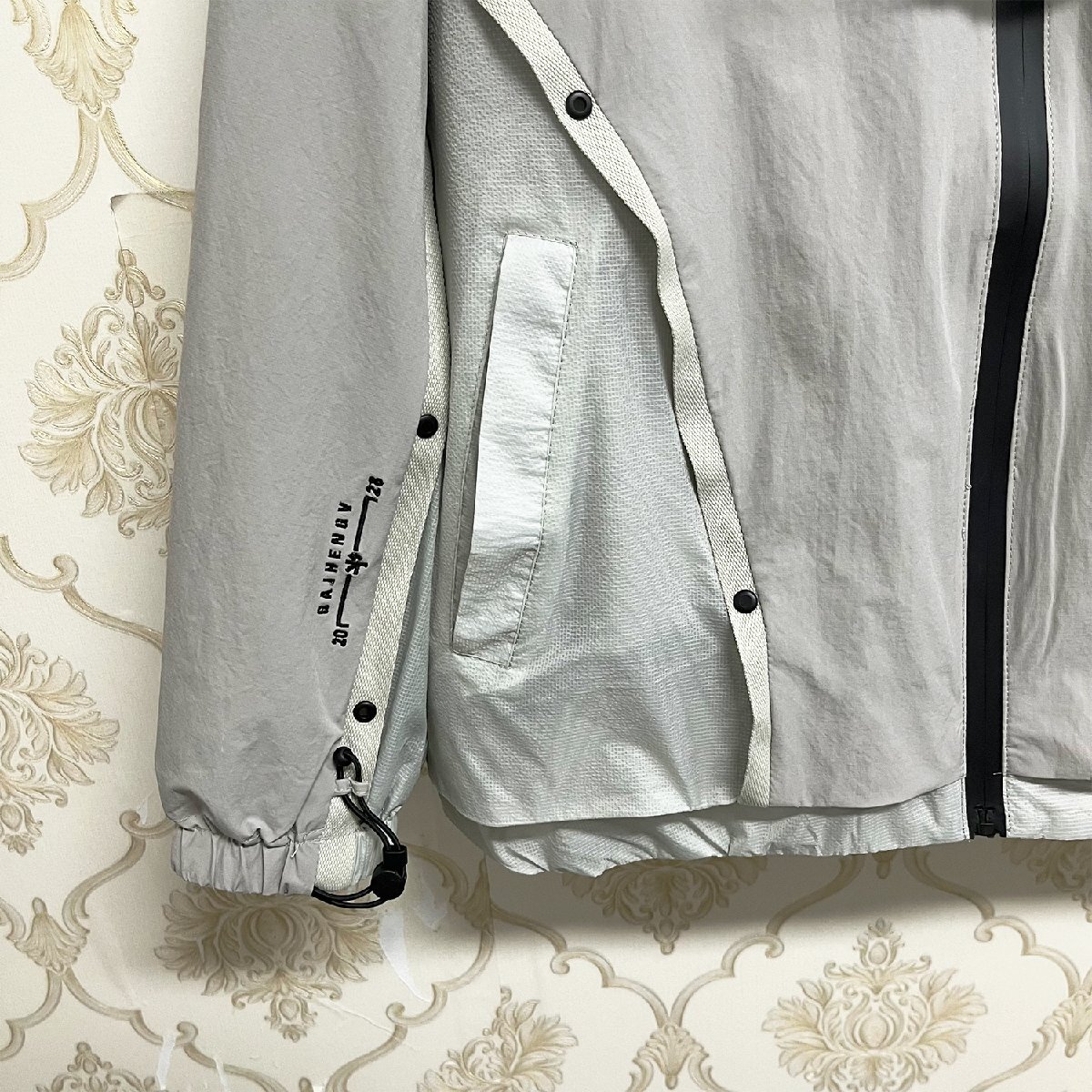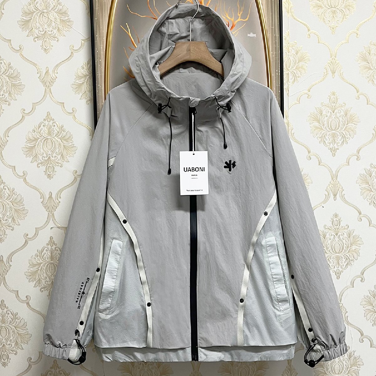上品EU製&定価6万◆UABONI*Paris*ジャケット*ユアボニ*パリ発◆快適 防風 刺繍 切替 フード付き マウンテンパーカー ブルゾン アウトドア 2XL/52サイズ