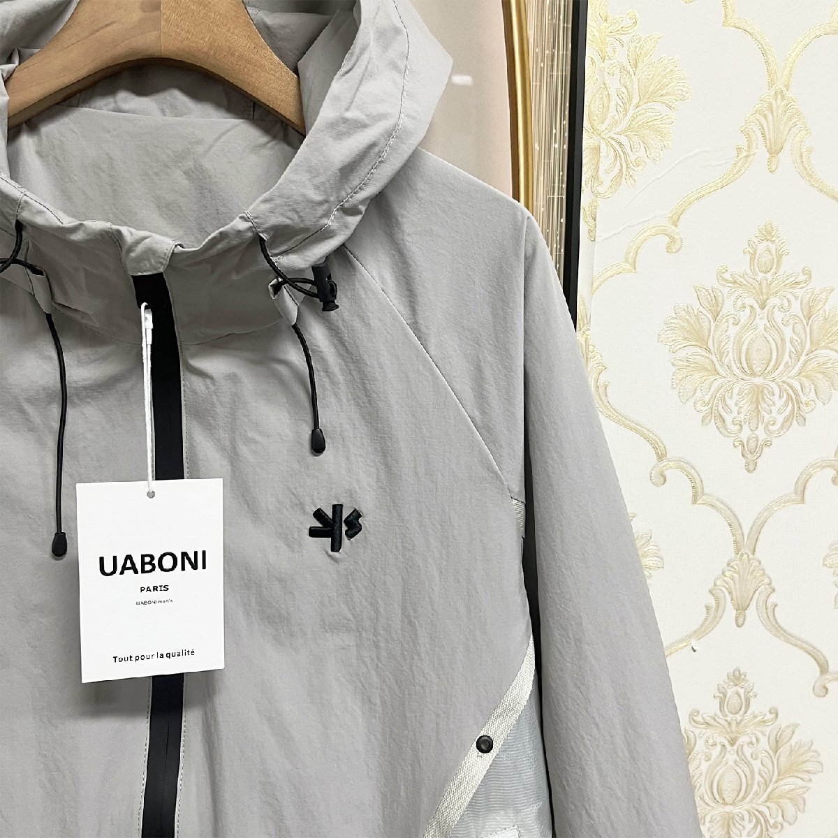上品EU製&定価6万◆UABONI*Paris*ジャケット*ユアボニ*パリ発◆快適 防風 刺繍 フード付き マウンテンパーカー ブルゾン アウトドア 2XL