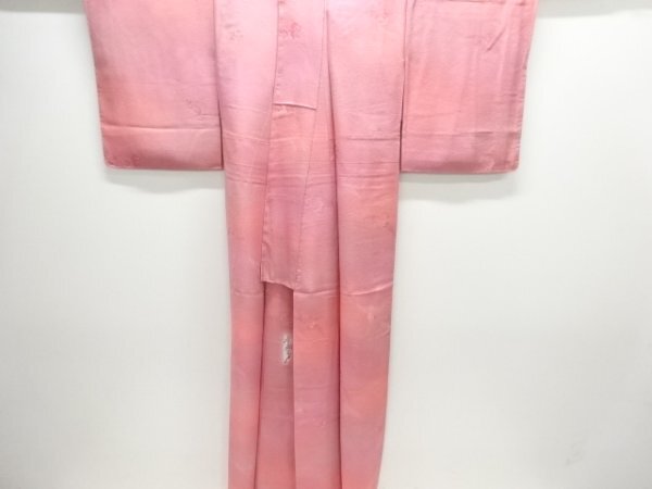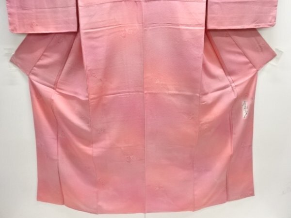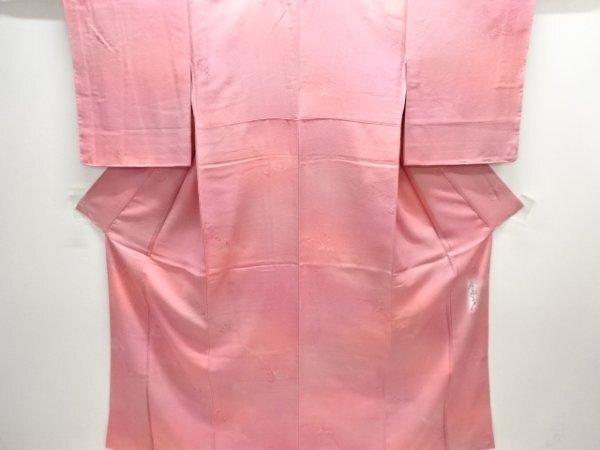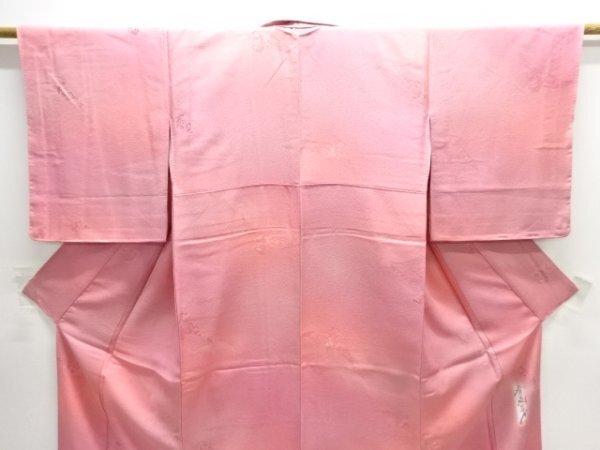 衿は広衿です。仕付け付きです。胴裏にのりアクが有ります。八掛は地紋入りです。左後身頃衿付下に薄アクが有ります。薄アク、薄点アクが有ります。状態は良いです。着用可能です。採寸・検品:岩井、あかほし 撮影:泉