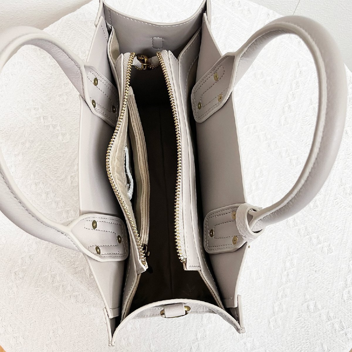 本体は高品質牛革レザーを使用しており、柔らかでシボが美しく、女性のニーズにしっかり応えていると思います。マットな質感のレザーで高級感がさらにアップ!使えば使うほど味が出る本革の魅力を堪能下さい。しかも、本革で汚れにくく、耐久性に優れているので長く愛用できます。