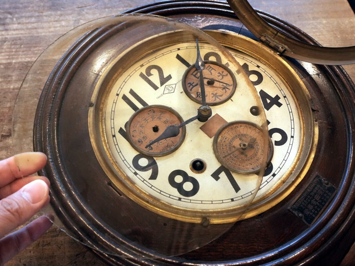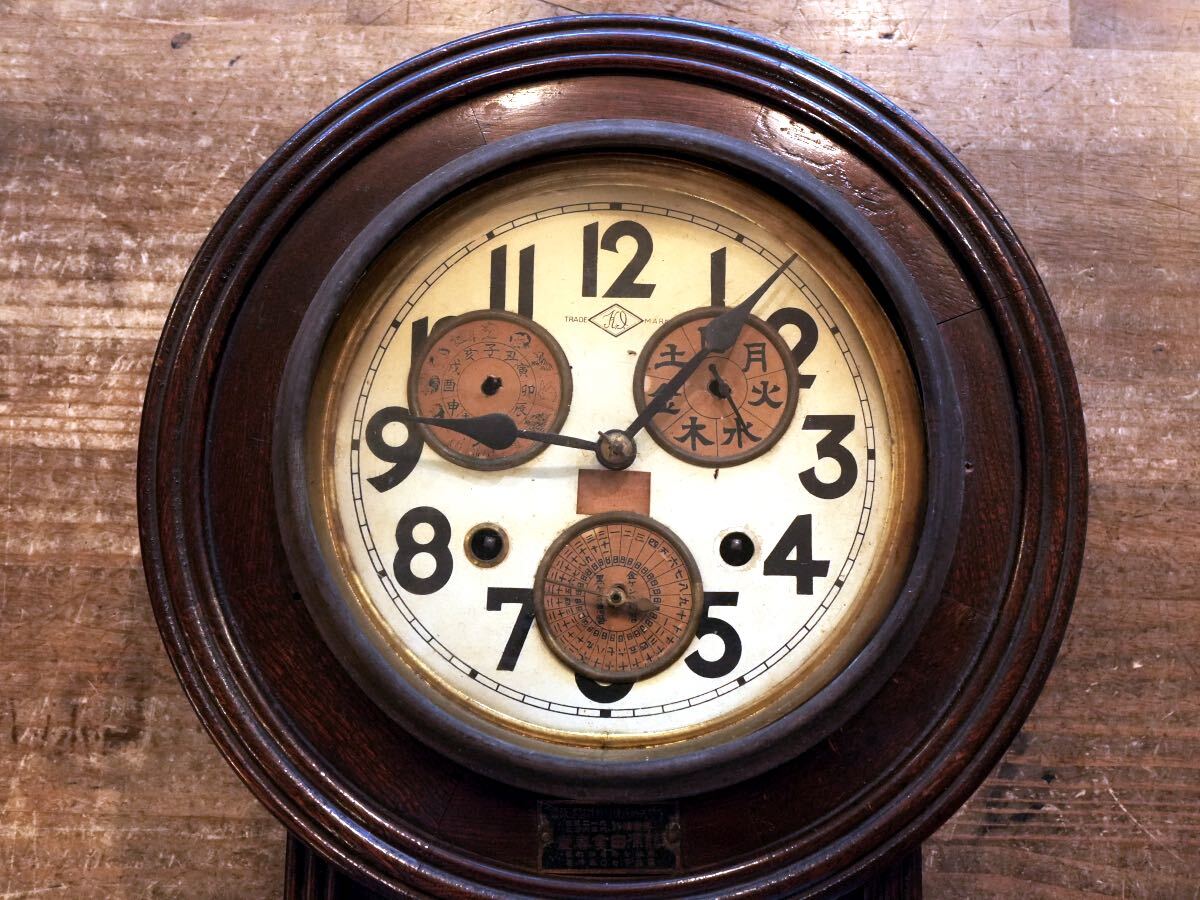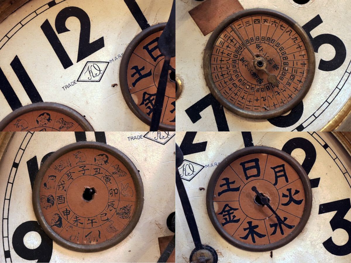 時計の時刻表示の他、干支やカレンダー、曜日の表示が付いている珍しいものです。