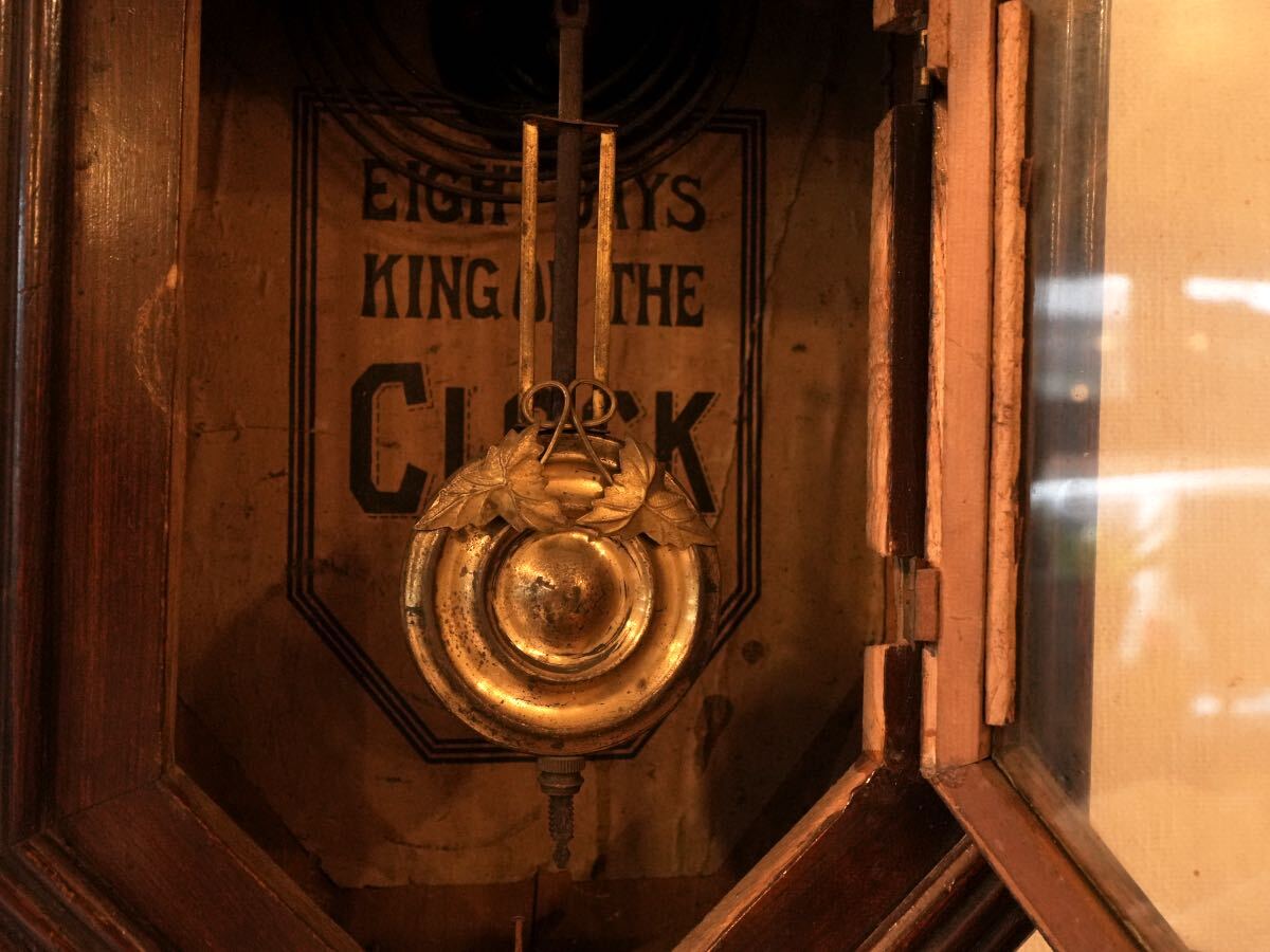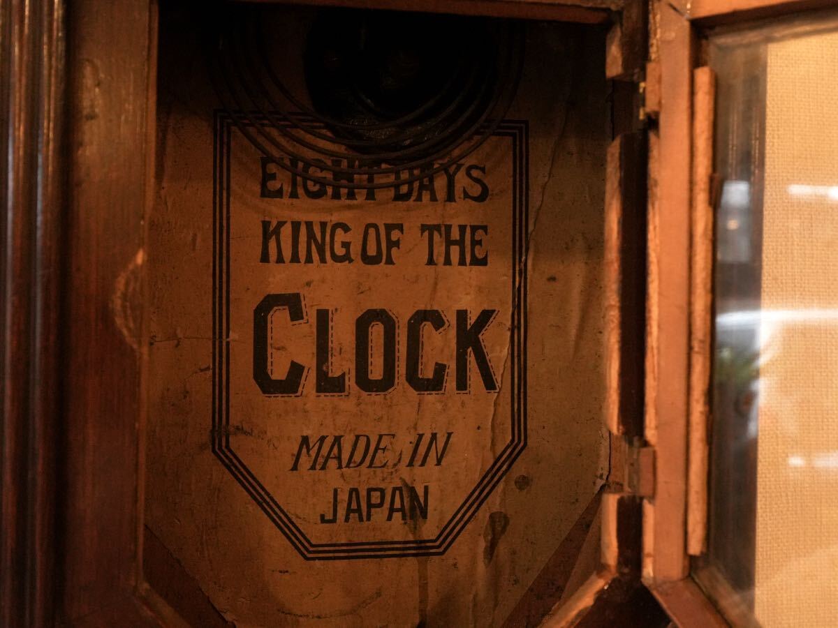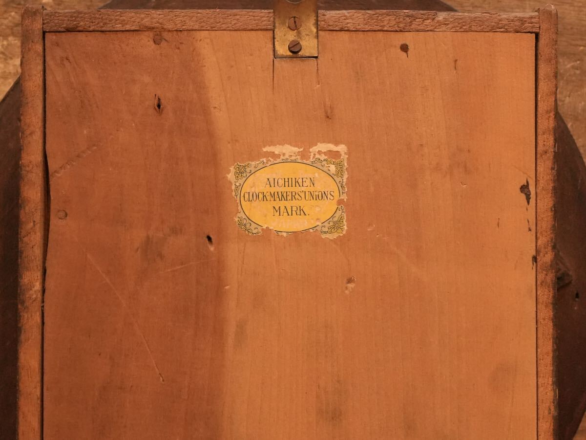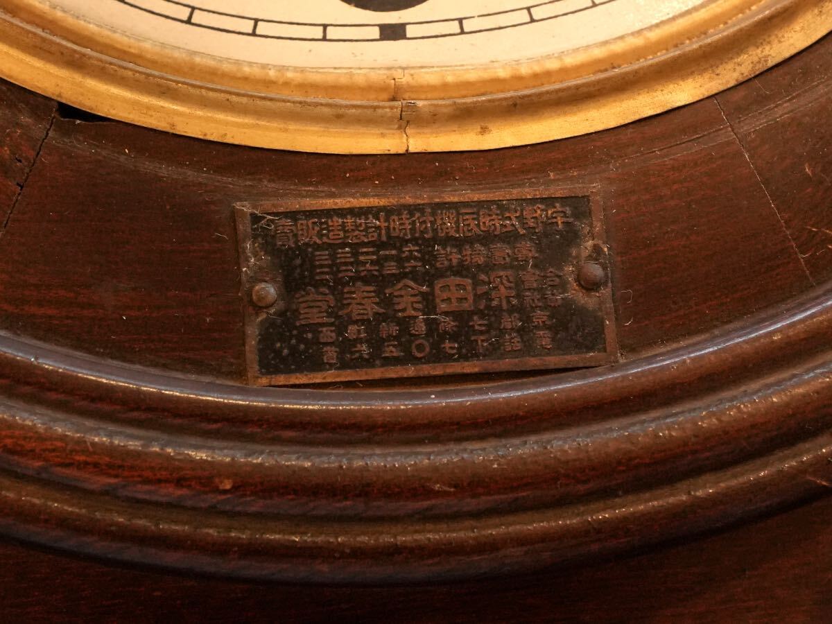 宇野式時辰機付時計 合資会社深田金春堂 と記載のある振子時計です。