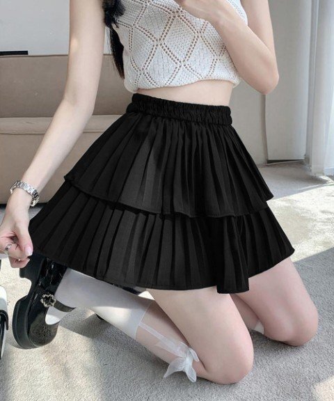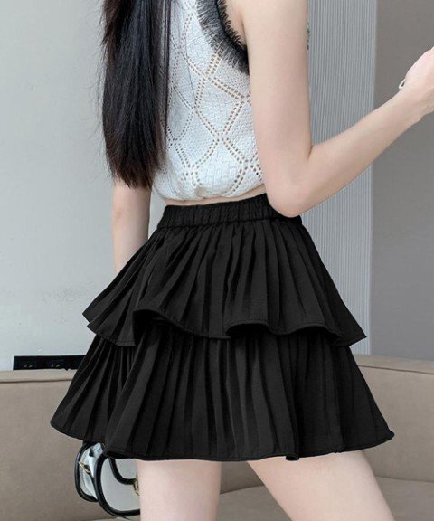 ティアードプリーツのフレアが魅力の、ガーリーな雰囲気漂うミニスカートです。
