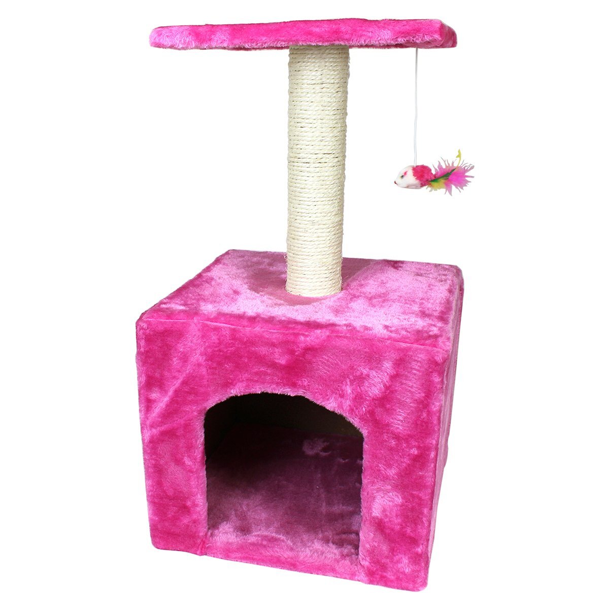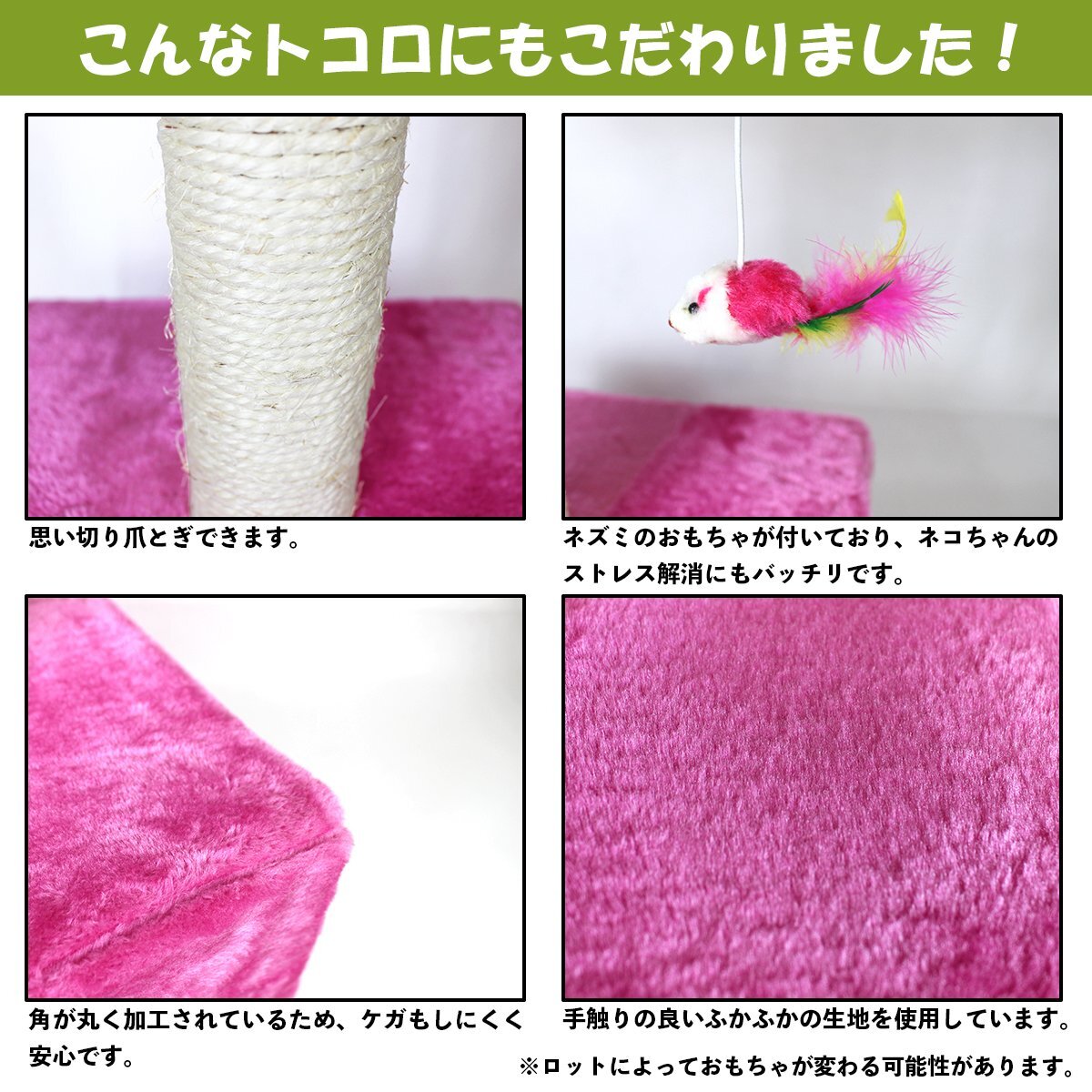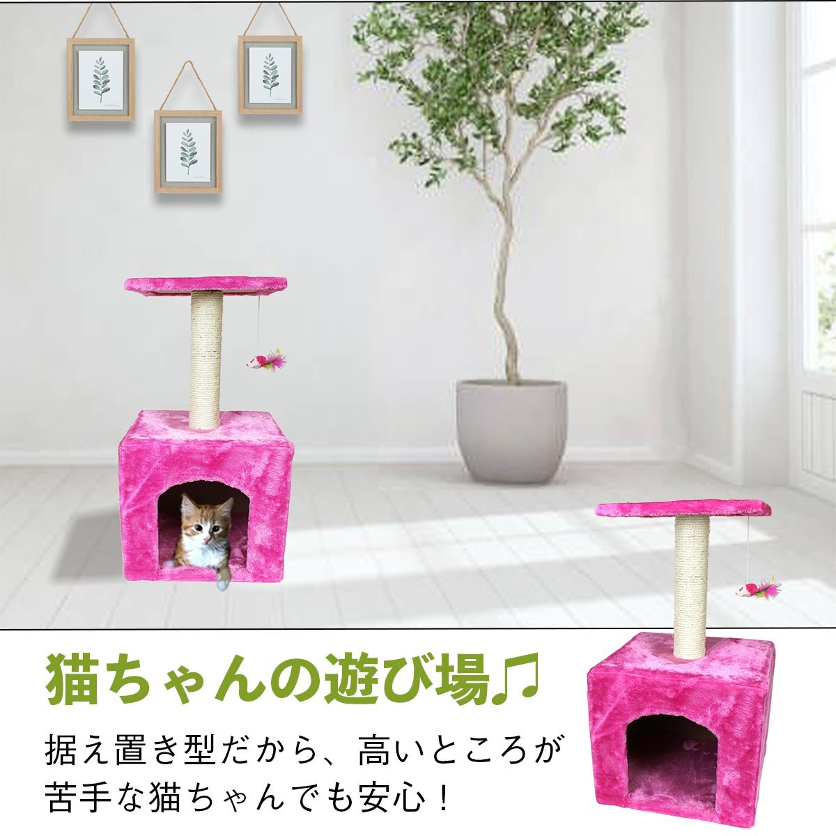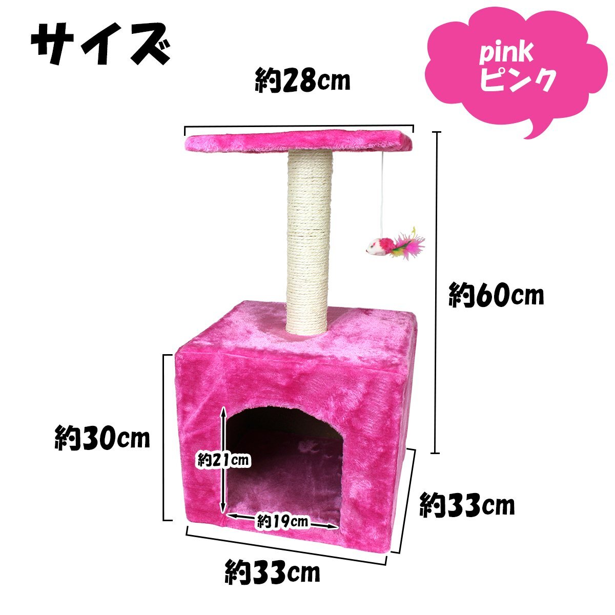 キャットタワー 高さ60cm ピンク 据え置き ネコハウス コンパクト 運動不足解消 爪磨き 遊び場や隠れ家として最適♪置き型