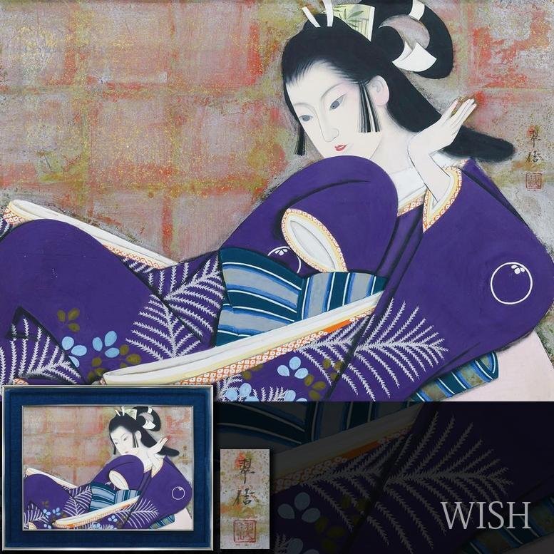 【真作】【WISH】遠藤翠信 日本画 20号 大作 金箔・プラチナ泥仕様 ◆古典美薫る日本画美人像   〇春光美術院同人 日美同人 #25093105