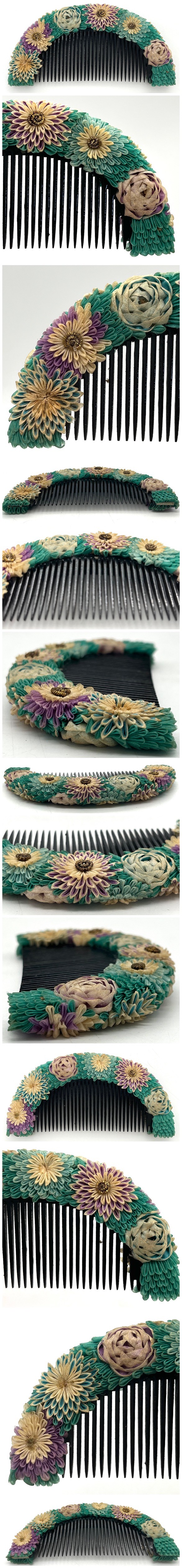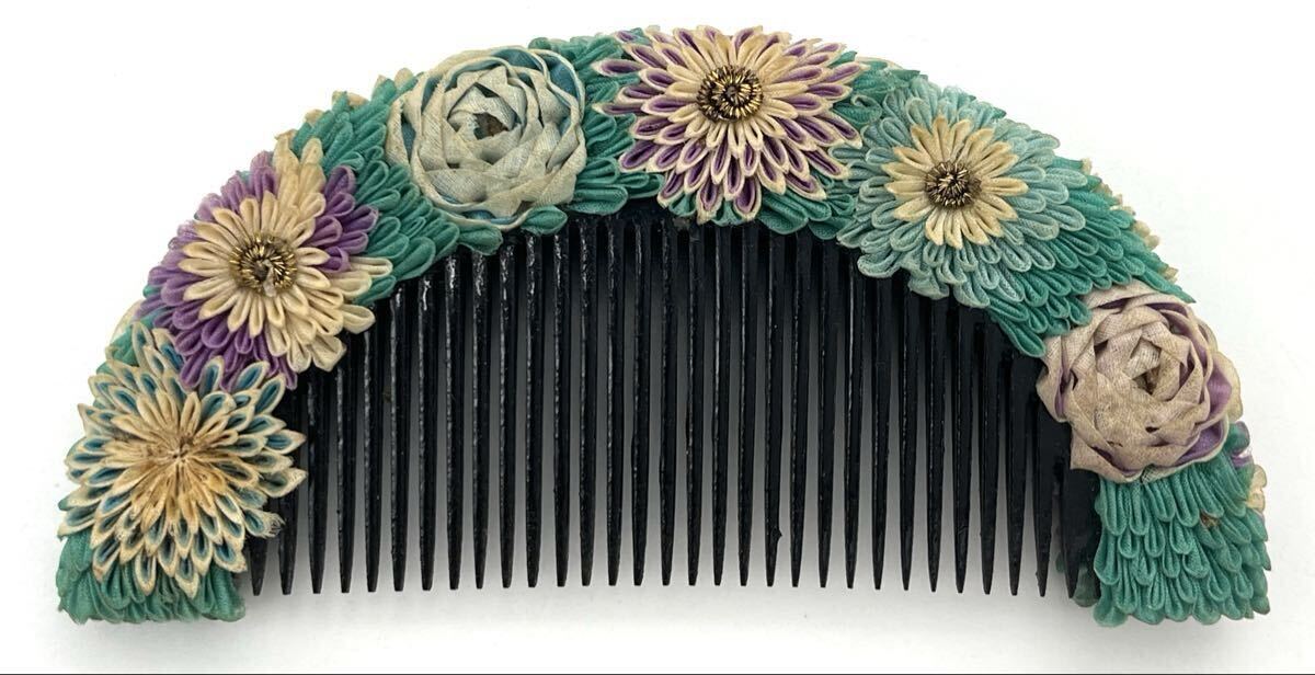 長崎旧家 蔵出 つまみ細工 ビラビラ櫛 古い和装髪飾になります。時代やタイトルは当方の見解ですのでご了承下さい。長崎市内中心地に200年以上在住の旧家から蔵出しした物になります。明治大正時代の絵葉書にも写っている名家で、完全なウブ品です。申し訳ございませんが、櫛について知識不足の為、詳しい方のご入札をお待ちしております。おそらく時代は明治大正時代頃と思います。状態は時代を考慮致しますと良好ですが、画像を必ず確認してご自身でご判断お願い致します。経年による使用感はあるとお考え頂き、神経質なお客様のご入札はお控え下さい。傷等はチェックしておりますが、見落とし等の可能性もございますので、画像にてご確認の上、気にならないお客様のみご入札お願い致します。