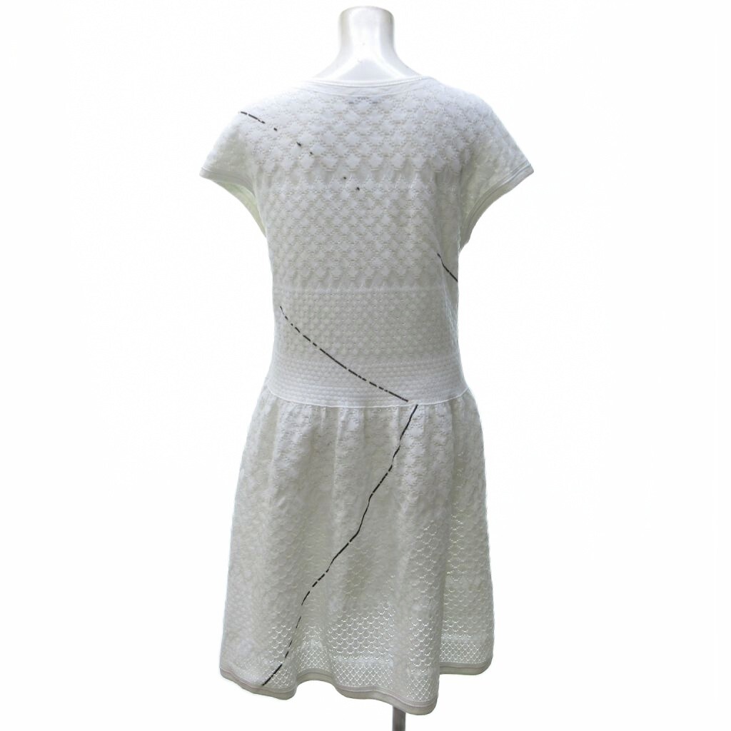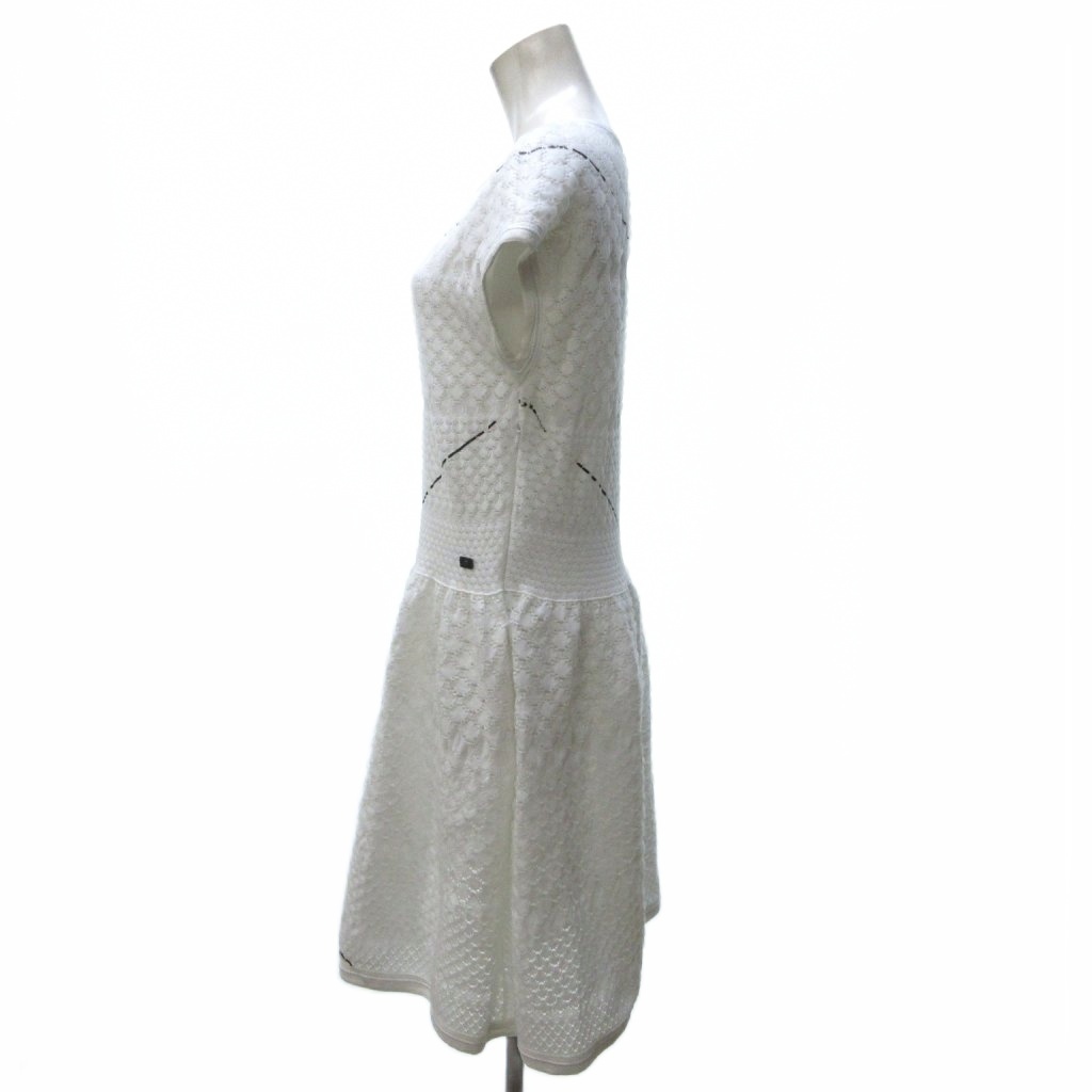 シャネル CHANEL 12SS チュールワンピース ひざ丈 フレア ココマークプレート 白 ホワイト ■MNK1